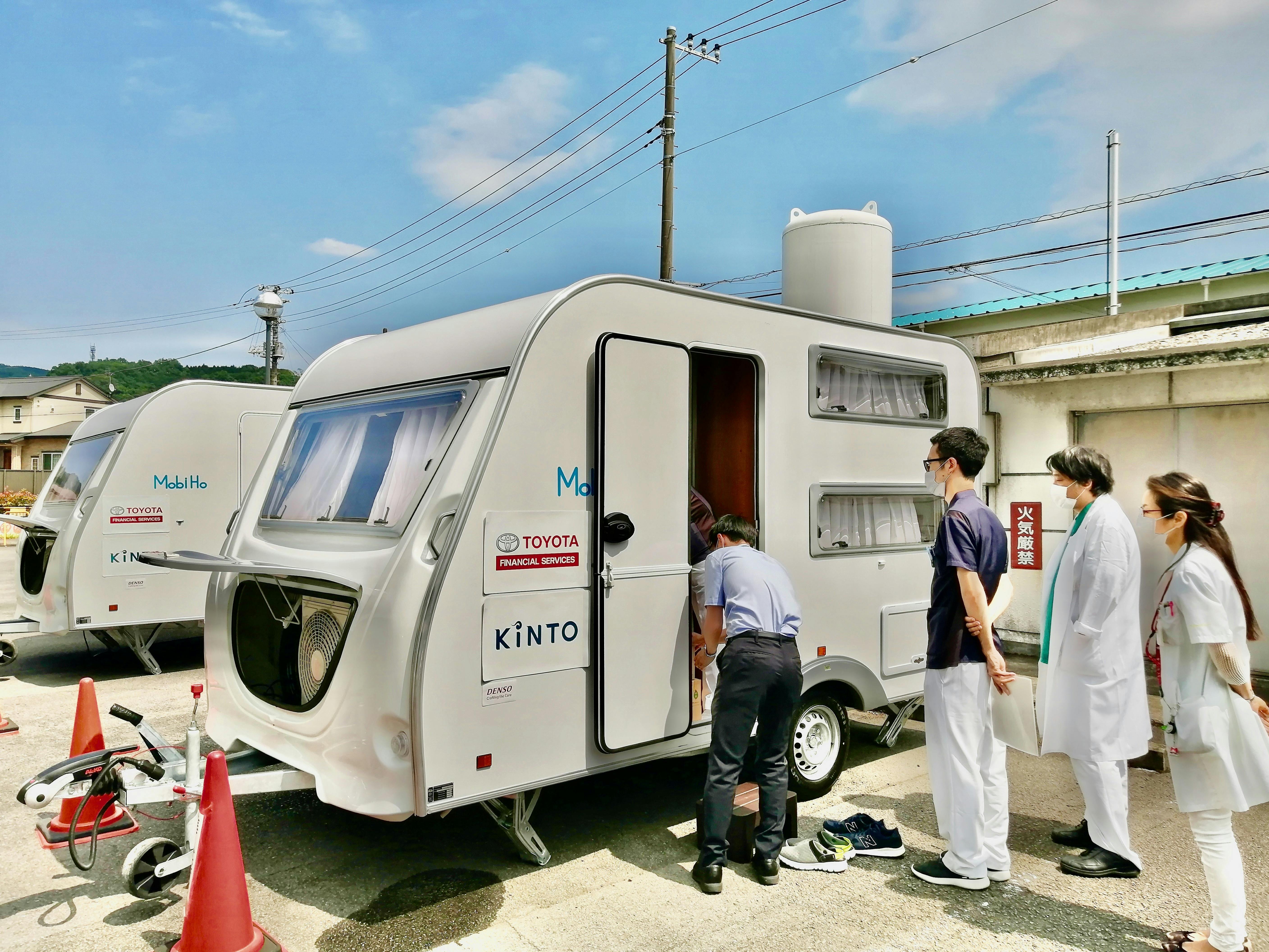 バンシェルター実行委員会・Carstayの宮下です。本日は、神奈川県内の医療機関さまへキャンピングトレーラーを合計2台を無償貸出して参りました。