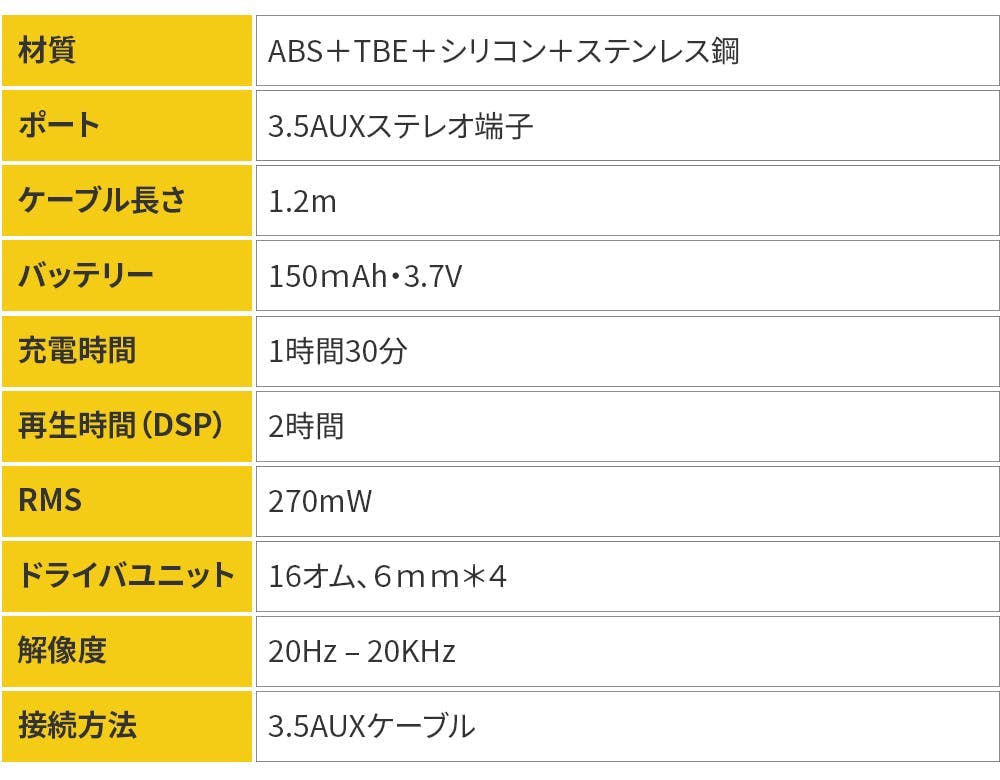 GAMOを3.5mmステレオケーブルでデバイスと繋げ、3D DSPスイッチで好みのモードに転換してください。DSP機能は一回の充電で2時間使用できます。バッテリー不足の際には、GAMOを充電するため3.5mmオーディオプラグとUSB充電器が同梱されています。バッテリー切れの場合にもGAMOを繋げデュアルドライバーでイヤホンを使えます。