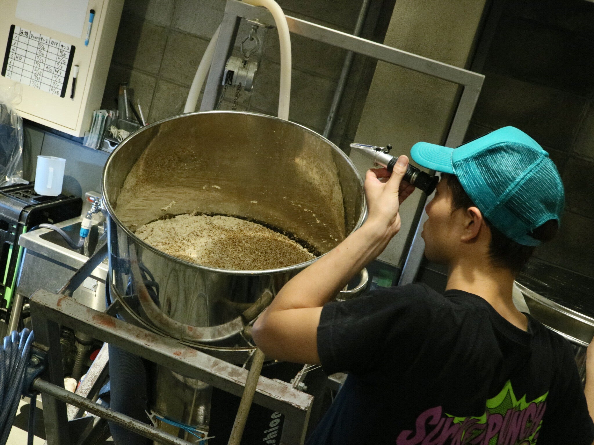 *丁寧に数値を測って仕込み中の京都、Kyoto Beer Lab タカラ氏