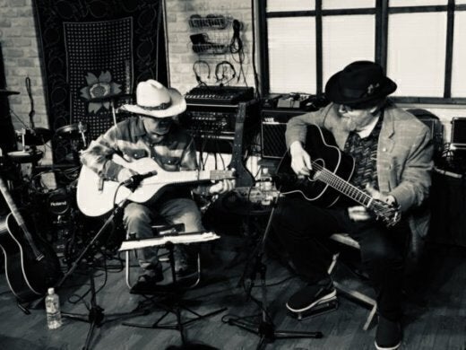 (写真:アメリカの伝説のギタリスト、ダコタ・デイブ・ハルさんのジャパン・ツアーの模様・・・左からザビエル大村さん、ダコタさん、豊田渉平さん)