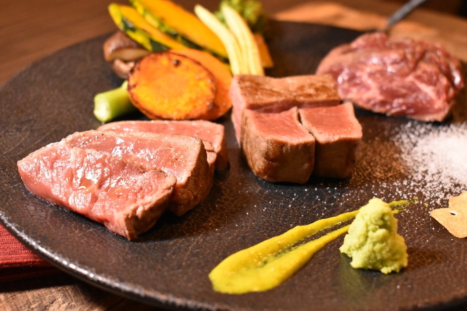 当店の看板メニューである赤身肉3種のステーキ盛り合わせでは、他店では味わうことのできない赤身肉の食べ比べをお楽しみ頂けます。