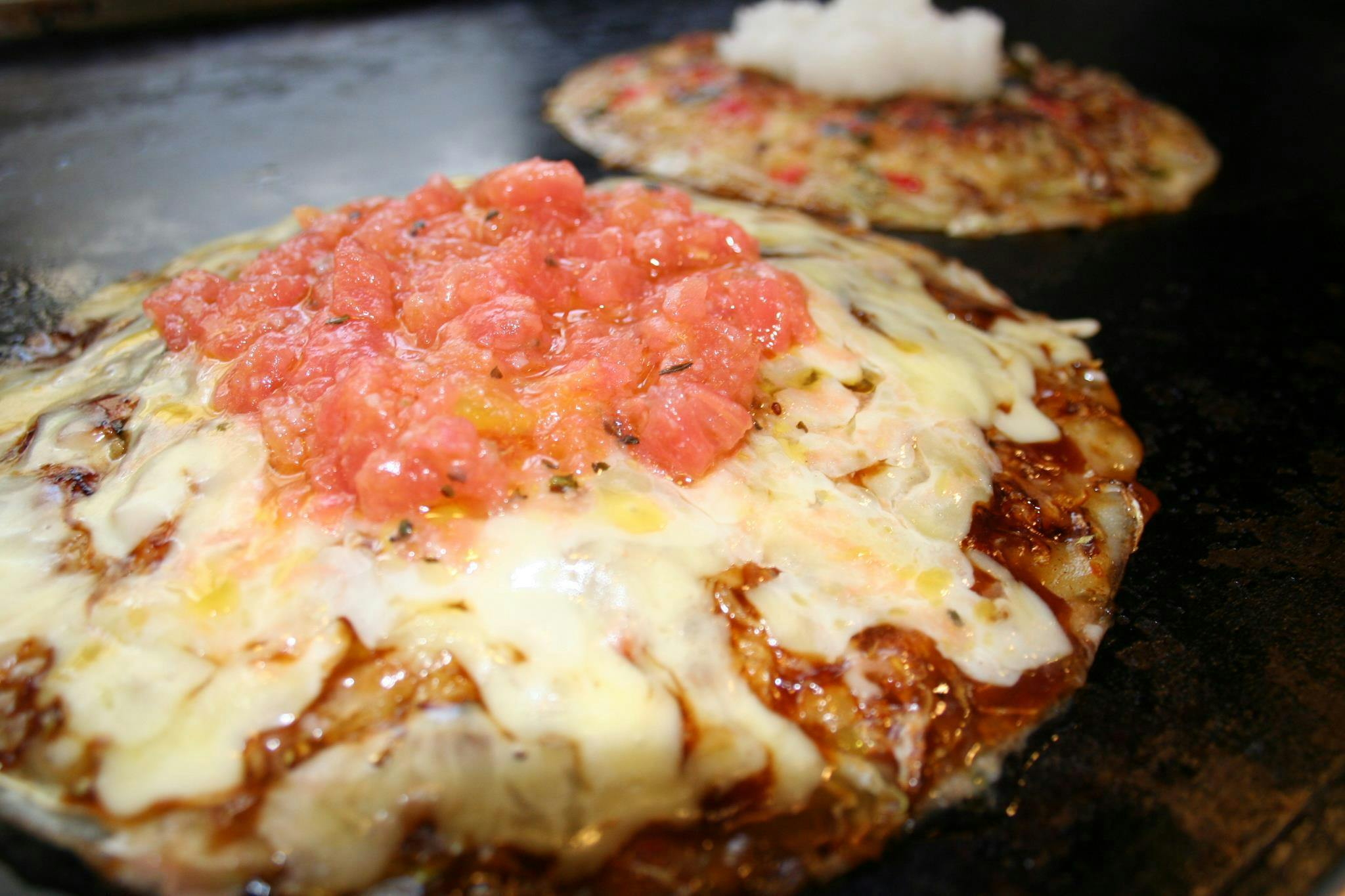 とろとろのチーズの上に、バジルの効いたフレッシュトマトソース。イタリアンとソースの融合。このトマトかしみんは沢山の皆様にとても愛されております。