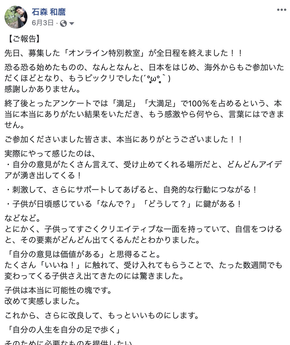 子どもたちを笑顔にするオンライン教室「アリストテレスの窓」を主宰しています。