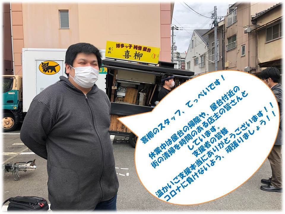 屋台自粛中は、店主の皆様並びに屋台を一緒に支えてくれるスタッフと共に清掃活動なども行っております。