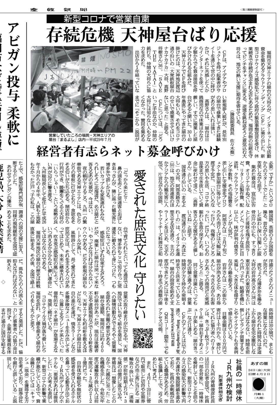 新聞でもあるように屋台の現状は、