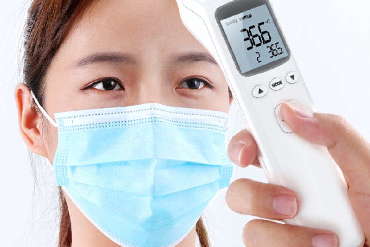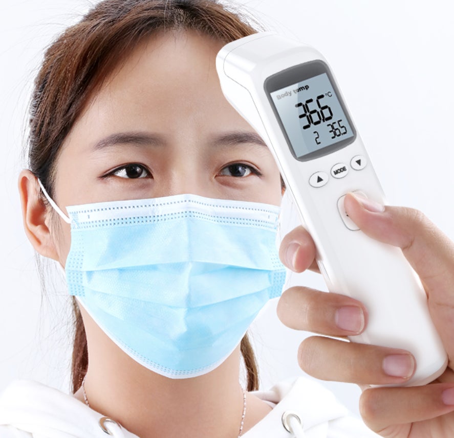 非接触体温計は、肌に触れずに測れるので、皮膚からの感染が抑えられ、
