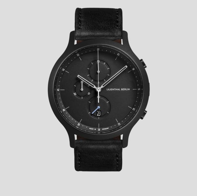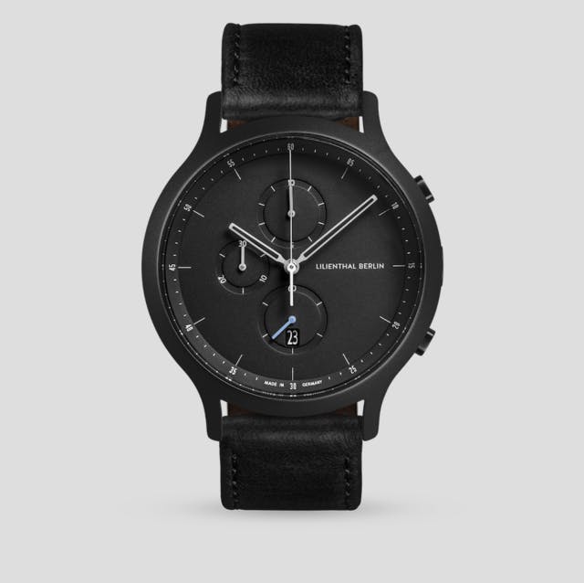 Lilienthal Berlin The CHRONOGRAPHはスポーティー、且つ洗練されたミニマムなデザインです。文字盤の数字フォントはベルリンのタイポグラフを象徴しています。刻の経つのが早い、メトロポリスベルリンでは、1/10秒も逃さないストップウオッチ機能付きクロノグラフがマストアイテム。