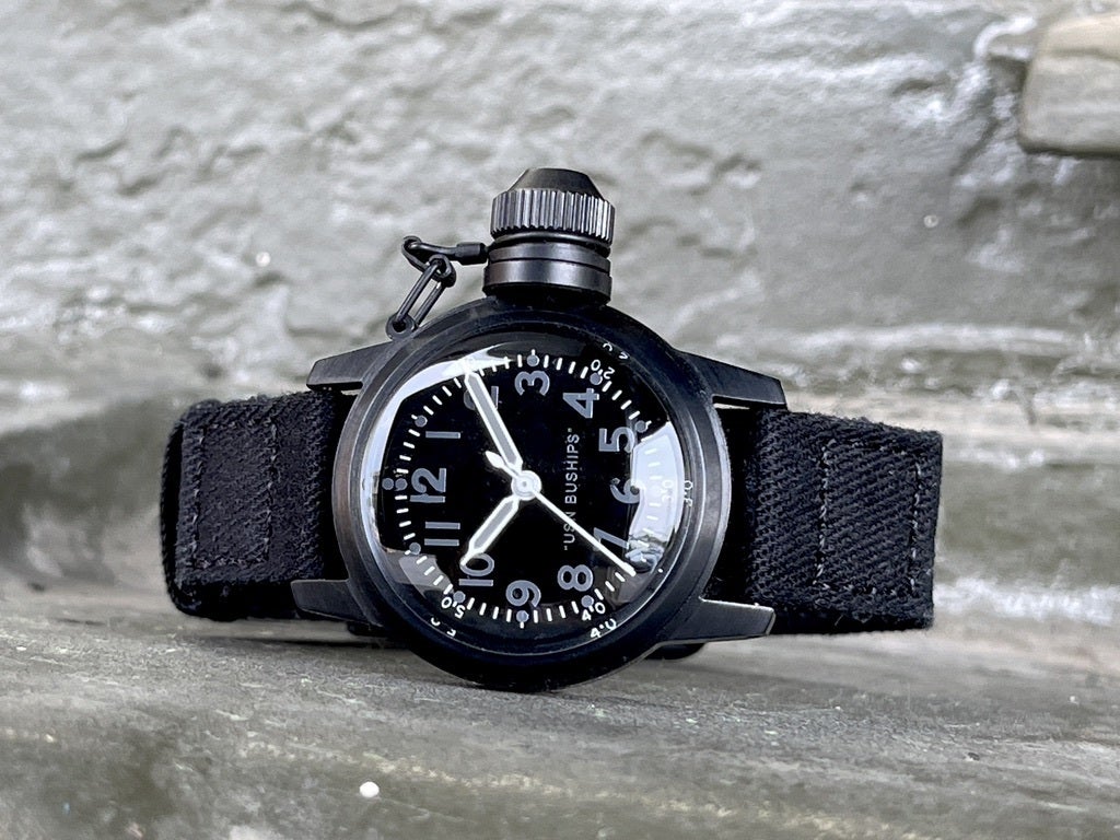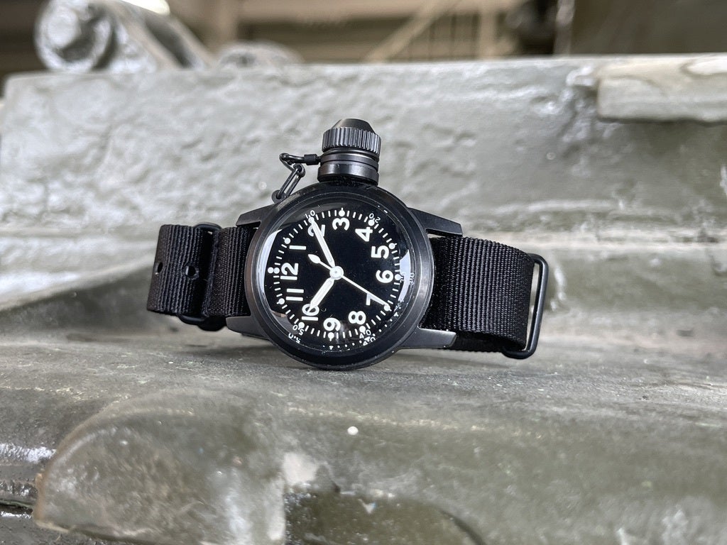 エリート集団である米軍UDT水中爆破チーム向けにつくられた時計は深海に耐えられる時計が求められました。40年代当時この様なリュウズキャップ形状が必要であったのですが、大きなリュウズキャップのバランスが、なんとも可愛らしい(水筒という愛称があります)時計となったことか。以来80年近く、世界中から愛される時計となりました。酷暑せまる夏、半袖やラフな格好が多く腕元が露出する機会が増えると思います。人とは1つ違ったこの時計で腕元を引き締めてはどうでしょうか?