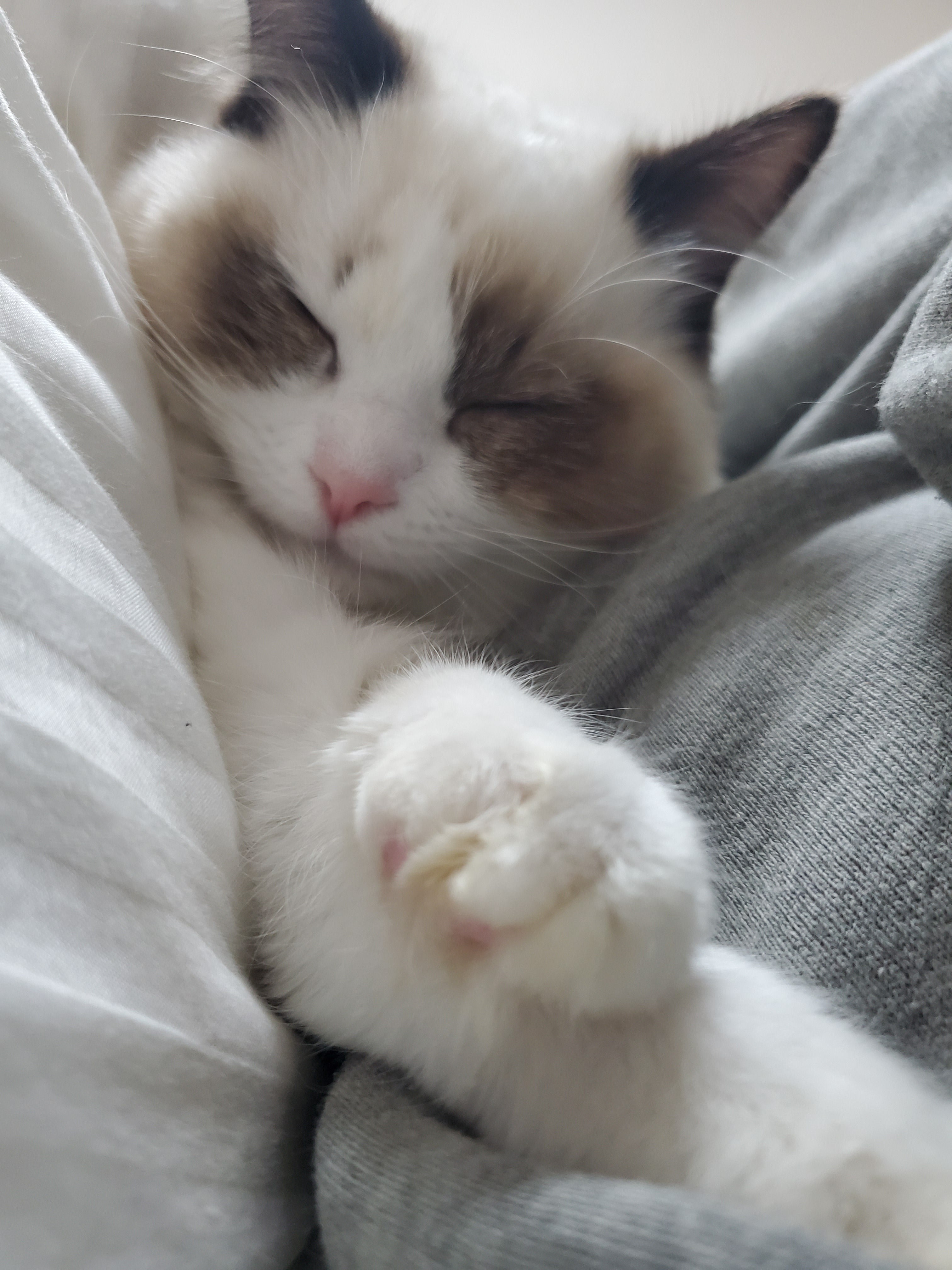 以前のように、沢山食べ、たくさん遊んで走り回り、このように私の腕の中で眠る姿を見れることを心の底から望んでいます。