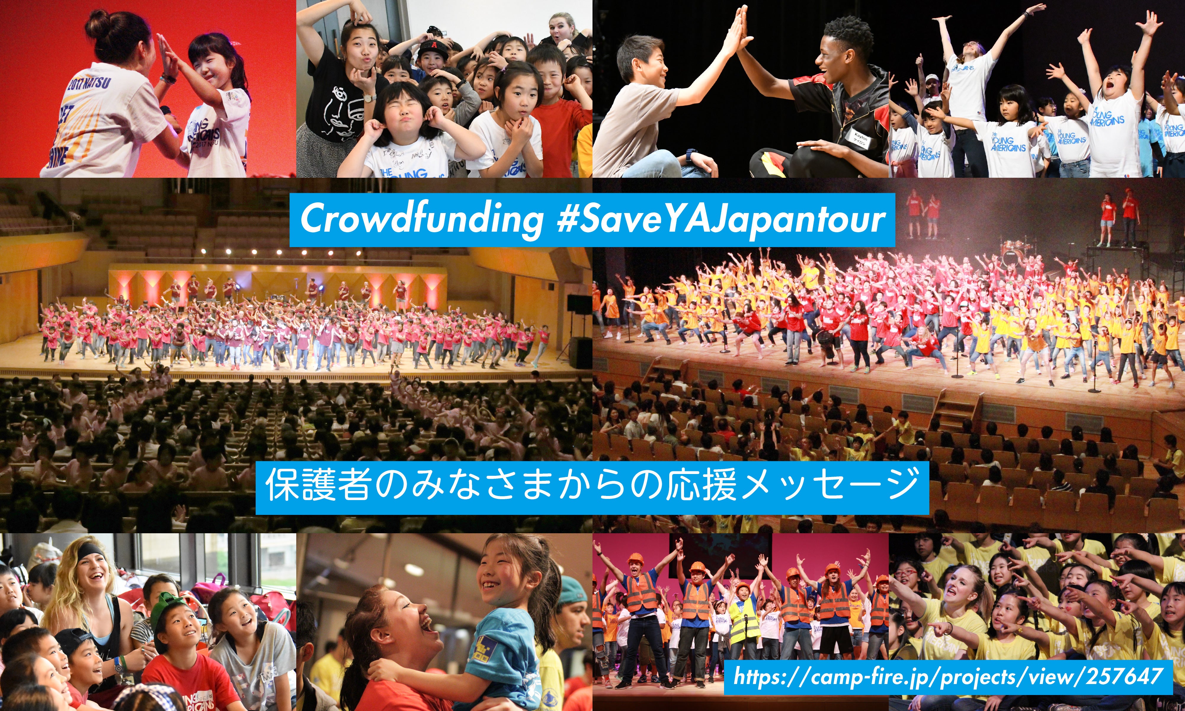 みなさま、プロジェクトへのご支援、拡散、ありがとうございます。クラウドファンディング終了まで、残り1週間を切ろうとしています。これまで、1400人以上の方からご支援をいただきました。ジャパンツアーを再開させたいという大きな願いのもとに、こんなにも多くの方が縁を繋いでくださったことに、改めて感謝いたします。支援者ページには、YAとの大切な思い出や、熱い応援など、あたたかいコメントをたくさんお寄せいただいています。そのなかから本日は、全国の保護者のみなさまのコメントを、いくつかご紹介します。初参加から早10年。YAに出会えたことにより、子どもの成長に彩りを与えてくださいました。また笑顔にあふれるツアーが送れることを願って★応援してます!息子が何度もお世話になりました。自由や心から楽しむこと、自分の才能を信じることを全身で教わってきました。やること全部を褒めてもらえる空間を今後も子供達に経験してほしいです。沢山の子供達に、自分を表現できる場、自分を好きになれるキッカケや出会いを提供して下さり、本当にありがとうございます。小学生の頃、YAツアーに喜んで参加していた双子の息子達は、高校生になりました。『将来、自分に子供が出来たら、YAのツアーに参加させてあげたい。』と申しております。子供達に笑顔を届けて下さるYAの皆様ご自身が、笑顔であり続けて下さる事を願い、応援しております。初めて娘を参加させたのは、当時、イジメにあっていて元気が無かったからです。娘がジャズダンス教室から貰ってきた1枚のチラシに釘付けになりました。「これだ!」と~このたった1枚のチラシが娘の運命を変えてくれました。初日から笑顔が戻りイキイキと参加したのを忘れられません。今の娘があるのはYAのおかげです。私達親子もこれからもYAの精神と共に…これからもずっとずっと応援しています!昨年初めて子供たちが参加し、私たちもホストファミリーとしてYAキャストの方と交流をさせていただきました。『歌が下手でも踊れなくても、そのままの君でいいんだよ』というメッセージはストレートに伝わり、子供たちの目が日に日にキラキラしていくのがわかりました。何とかまた日本に来てほしい。そして1人でも多くの子供たちにYAのメッセージが届きますように。応援しています。頑張ってください。小1から12年間 子どもが受け取った力と感動は はかり知れません。我が家は 卒業しましたが これからも ヤングアメリカンズ が続いてたくさんの子どもたちが 夢 希望 パワー 愛を 受け取れますように!いつか 孫が参加&サポーターが夢です!引き続き、応援よろしくお願いいたします。
