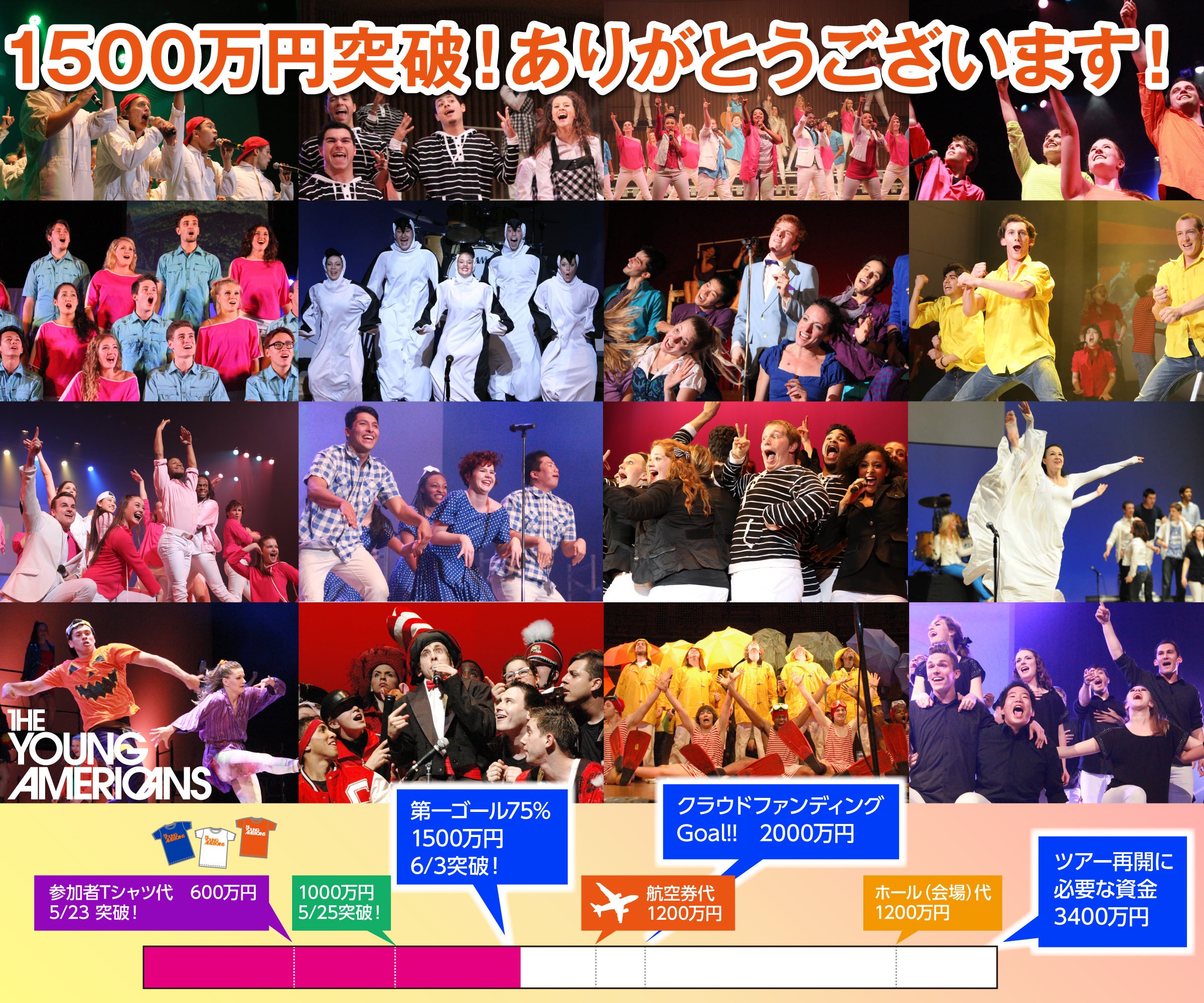 みなさま、プロジェクトへのご支援、拡散、ありがとうございます。昨日、目標の75%である1500万円を突破しました!あわせて、ご支援くださる方も、900人を超えました。みなさまのコメントを拝見すると、「今年初めて参加するはずでした」という方から、「ワークショップに参加していた娘はもう大学生です」といった方まで、さまざまな世代の方が集ってくださっていることを感じます。プロジェクト終了までは、まだ1カ月強あります。このクラウドファンディングが拡散することで、より多くの方にYAを知っていただき、ツアーが再開した折には、15年間で最高の盛り上がりでYAを迎えたいと思います。引き続き、応援のほどよろしくお願いいたします。写真は、歴代のYAのショーの写真を集めました。すべて、違うツアーからピックアップしています。「このキャスト覚えてる!」「あんな衣装の曲あったなー!」なんて思い出していただけると嬉しいです。