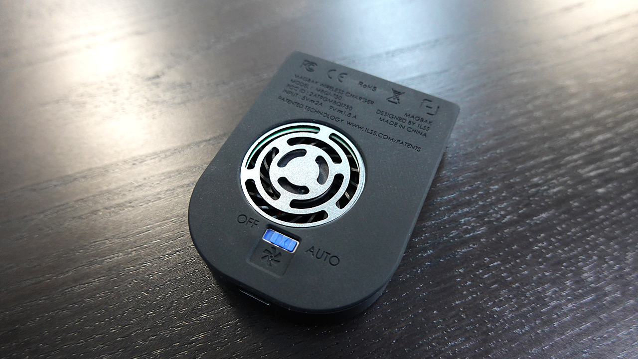 3) ワイヤレス充電器の裏面のファンの設定をAUTOにしてください。