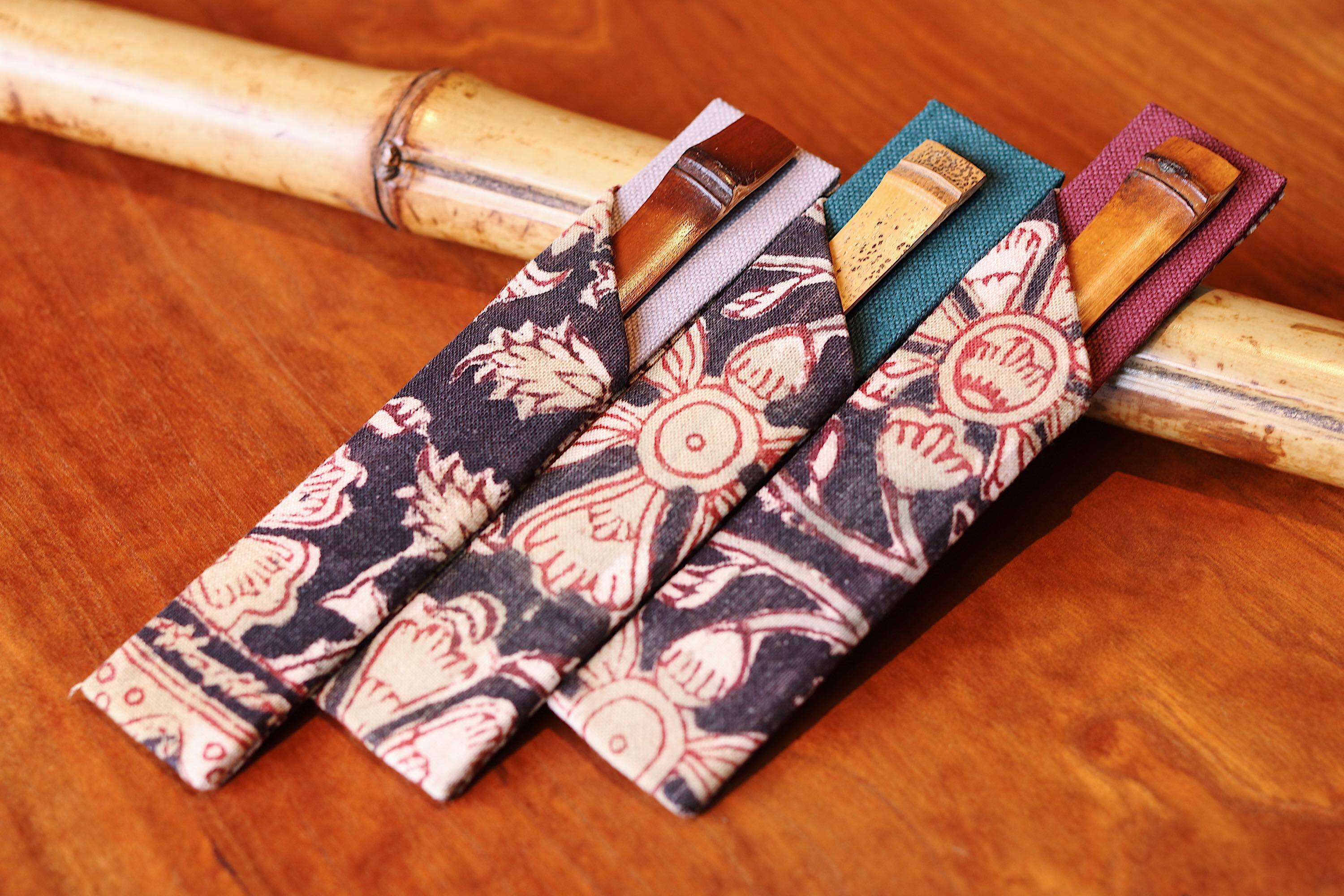 煤竹の菓子切り インド更紗を使用した菓子切り鞘