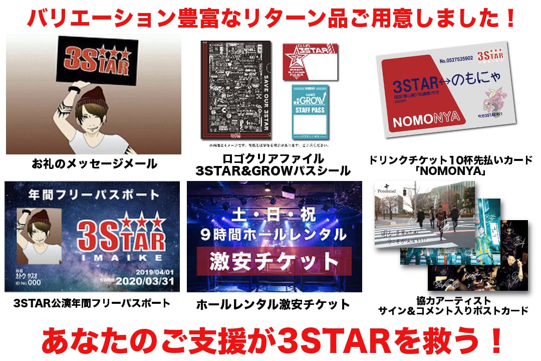 ほとんどの収入が断たれ、さらにこの先の見通しも立たない中、3STARの存続が困難に陥いり、閉店の選択肢もよぎる状況となってしまった為、大変心苦しいお願いではありますが、皆様からのご支援を緊急で募らせて頂きます。