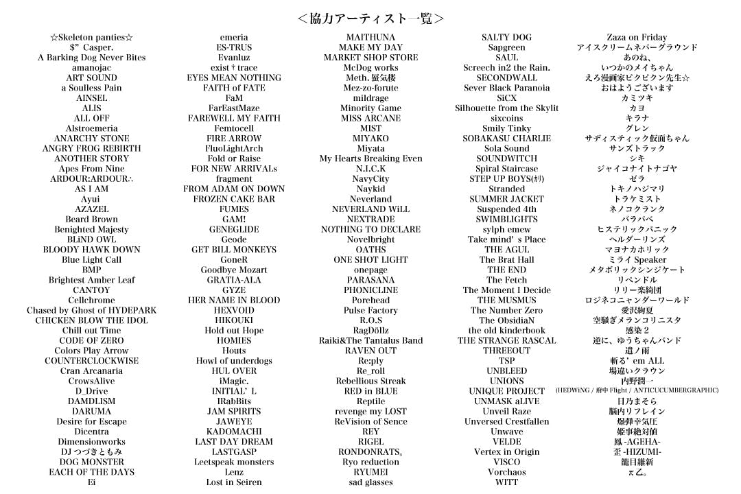 ※協力要請の声掛けきれないていないアーティストもいますので申し訳ないです。。