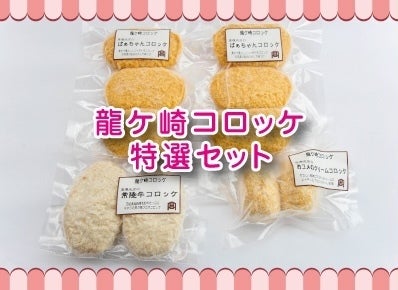 日本一に輝いた龍ケ崎コロッケの特選セットです。1番人気のばぁちゃんコロッケは、じゃがいもに、豚ひき肉・玉ねぎを秘伝のたれで味付けして練りこんだコロッケ。ソースなしでもおいしく召し上がれます。昔ながらの懐かしいコロッケです。