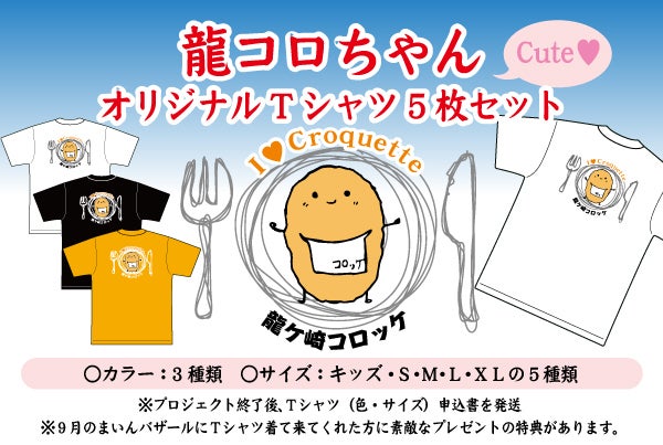 そして、今回のプロジェクトも大詰めとなってきた今、龍ケ崎コロッケクラブの活動をこれからもパワフルに行っていくことで、龍ケ崎の地域を元気に盛り上げていくために、龍コロちゃんTシャツの売り上げの一部を龍ケ崎コロッケクラブの運営費に当てさせていただく形で、多くの地域を想う皆さまの気持ちを受け止められるよう新たなリターンを追加させて頂いた次第です。