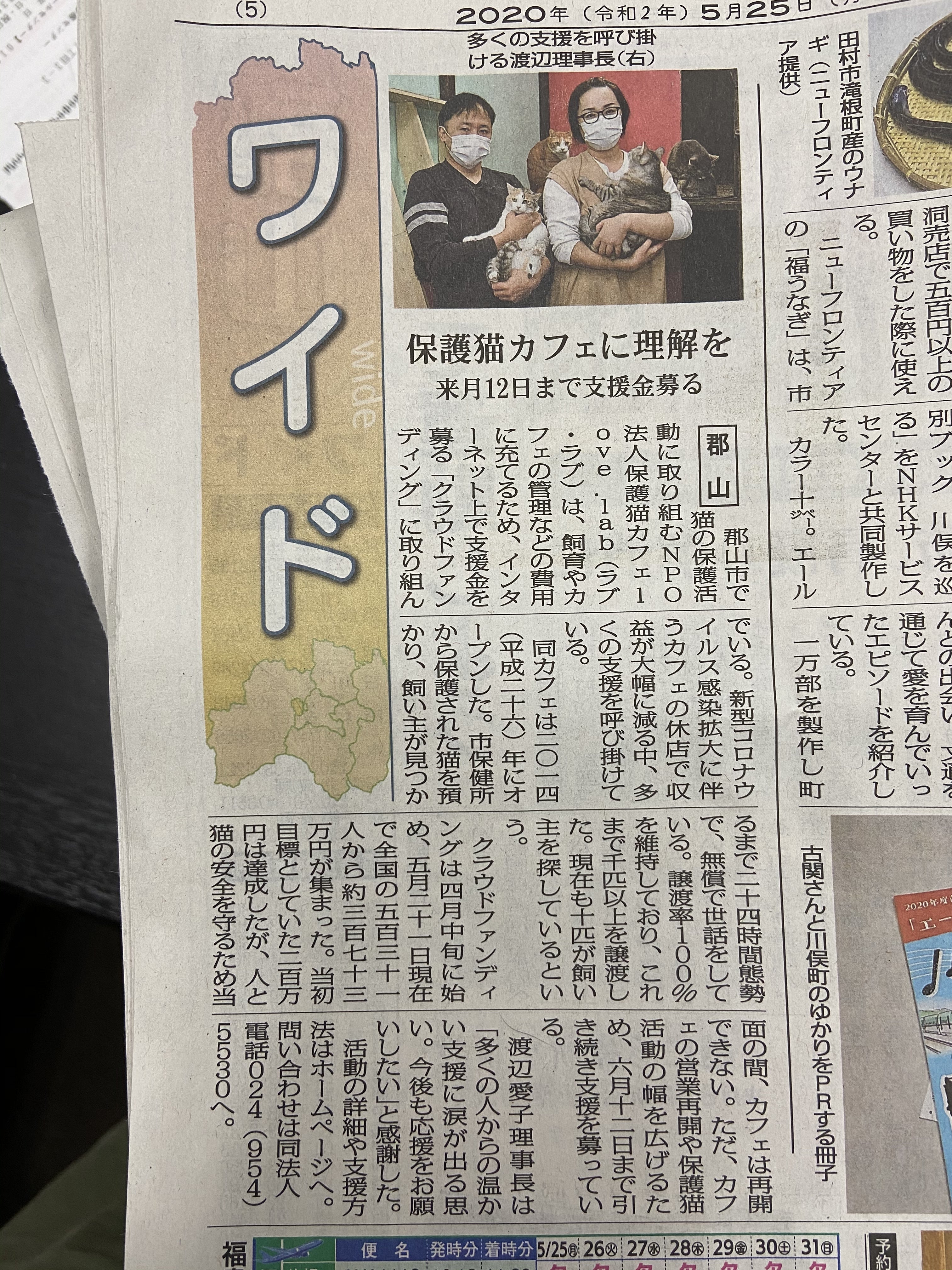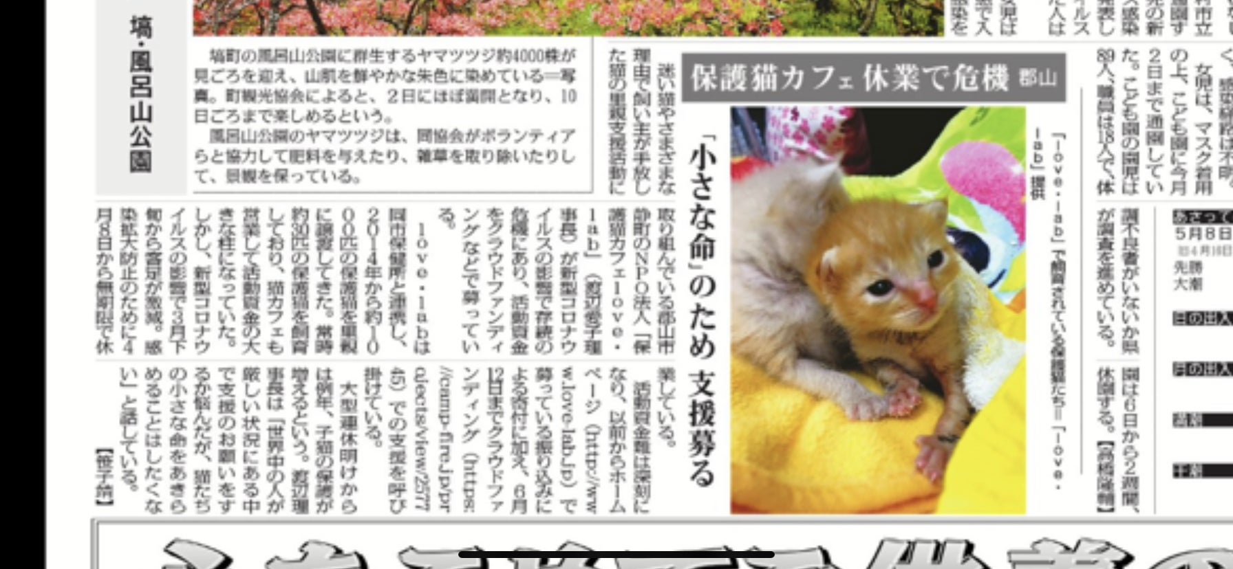 今回、当団体の活動など、新聞各社、テレビ局に取り上げて頂き、私たちの活動を多くの方に知って頂き感謝の気持ちでいっぱいです。