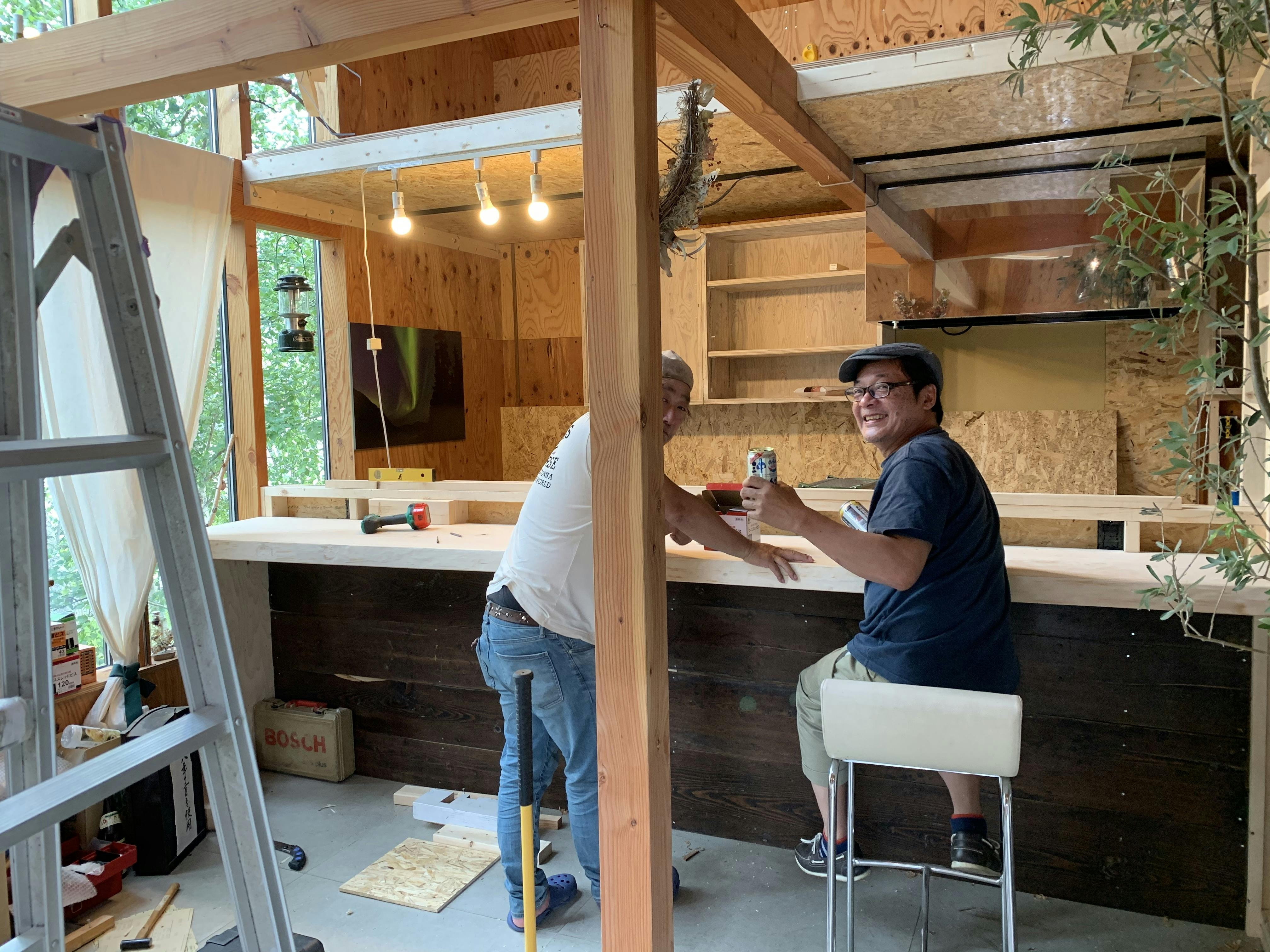 さぁ、山場は超えたので、後は吊り戸棚と黒板、周りの壁を作ったらペンキ塗りです♪