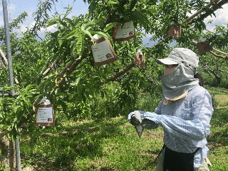 桃から厄を除ける農作業「果樹袋かけ」