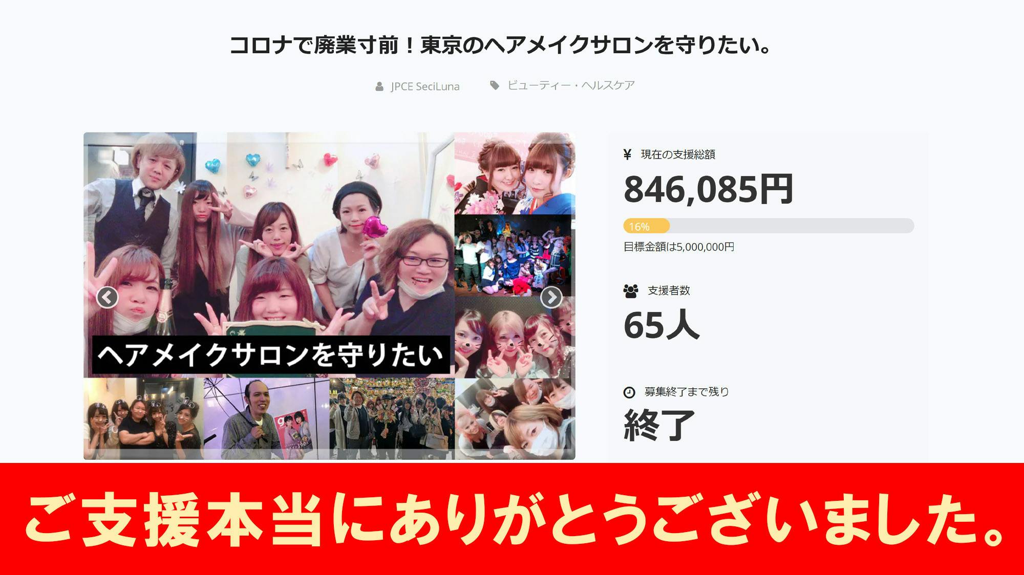 今日までに65人のみなさまにご支援いただき、846,085円の資金を集めることができました。