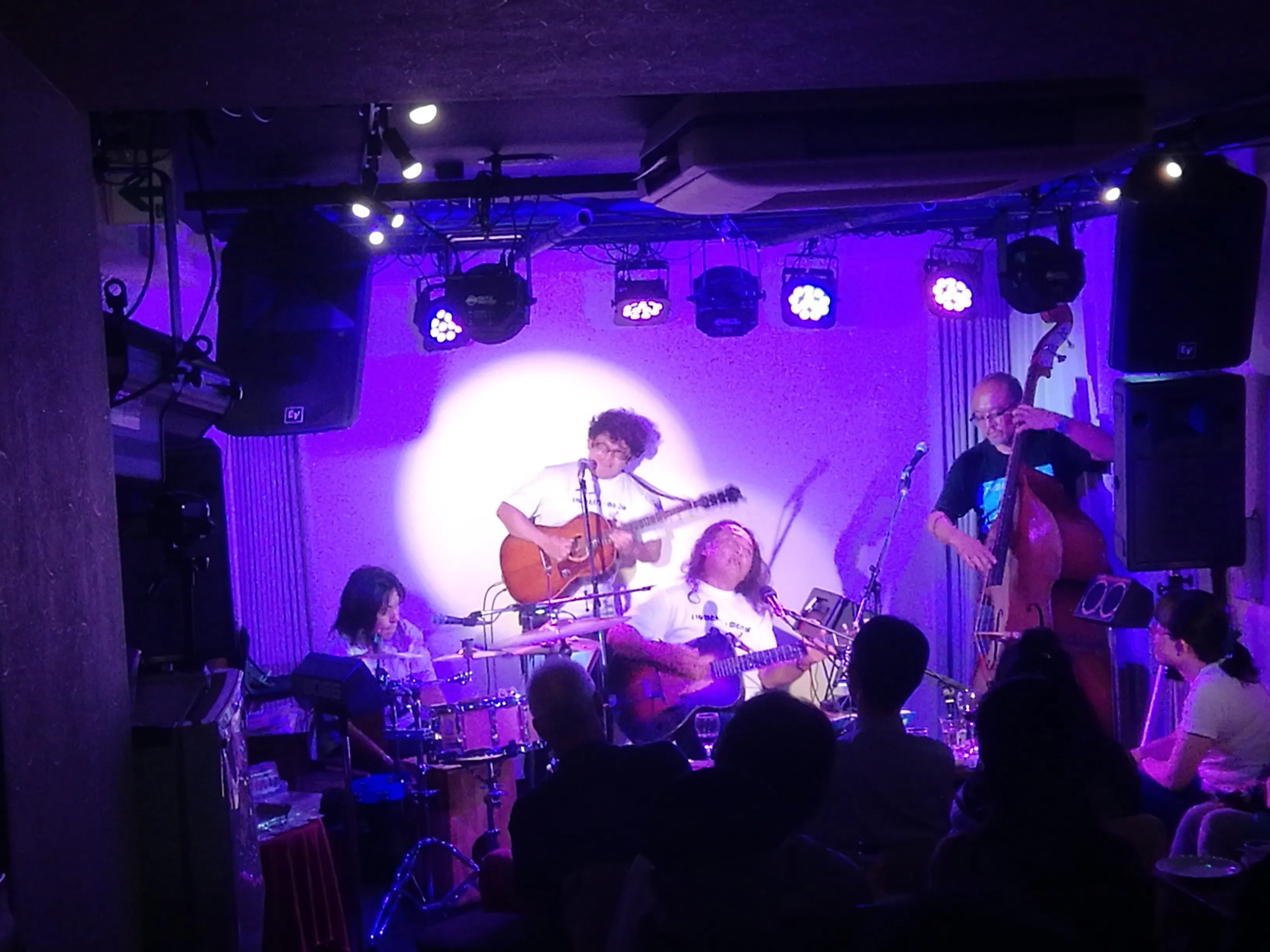 僕自身も2年前に移転されたこの曙橋のコタンが前よりもまして心から大好きで、ステージ全体が真新しく、そんな白いライブハウスのバック・キャンパスに映像を映し出して歌ってみたり、テーブルをくっつけた台の上にドラムを置き、スモークを出しながらドラムソロを叩いてみたりと、
