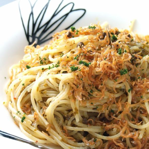 当店オリジナルで一番人気の「高菜とちりめんのペペロンチーニ」