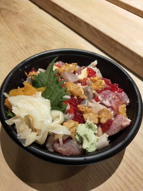 上段写真は、テイクアウトの「ばらちらし」です。1,100円(税込)~、ご要望に応じてお作り致しております。