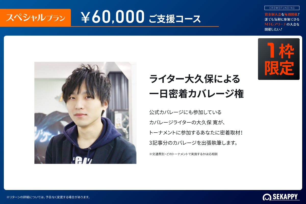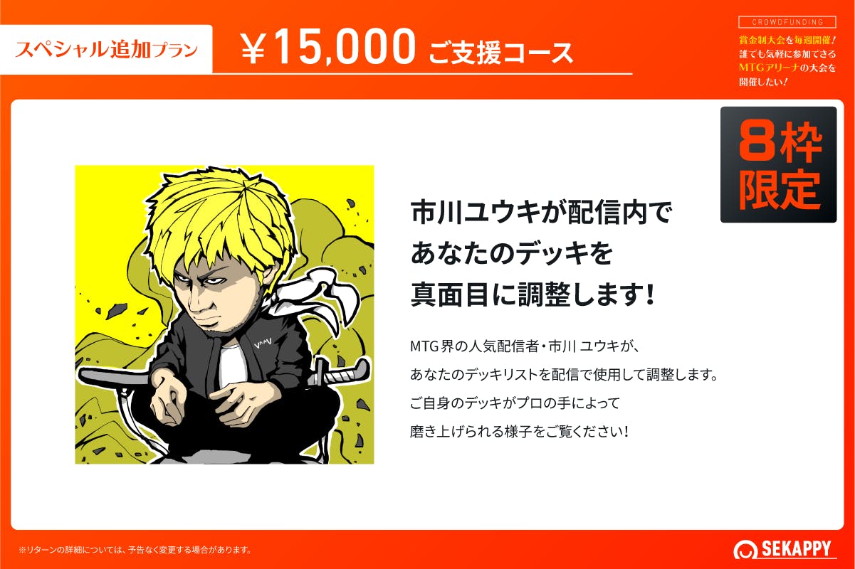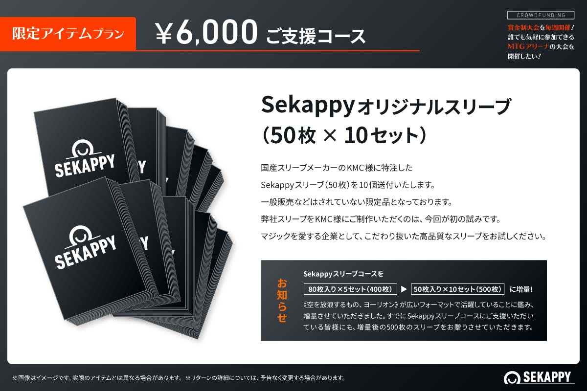 私たち株式会社Sekappyでは、賞金制大会の運営にご賛同いただけるスポンサー様を募集しております。私たちは、マジック:ザ・ギャザリングとeスポーツの未来を見据え、その可能性を大きく広げることを目的としています。