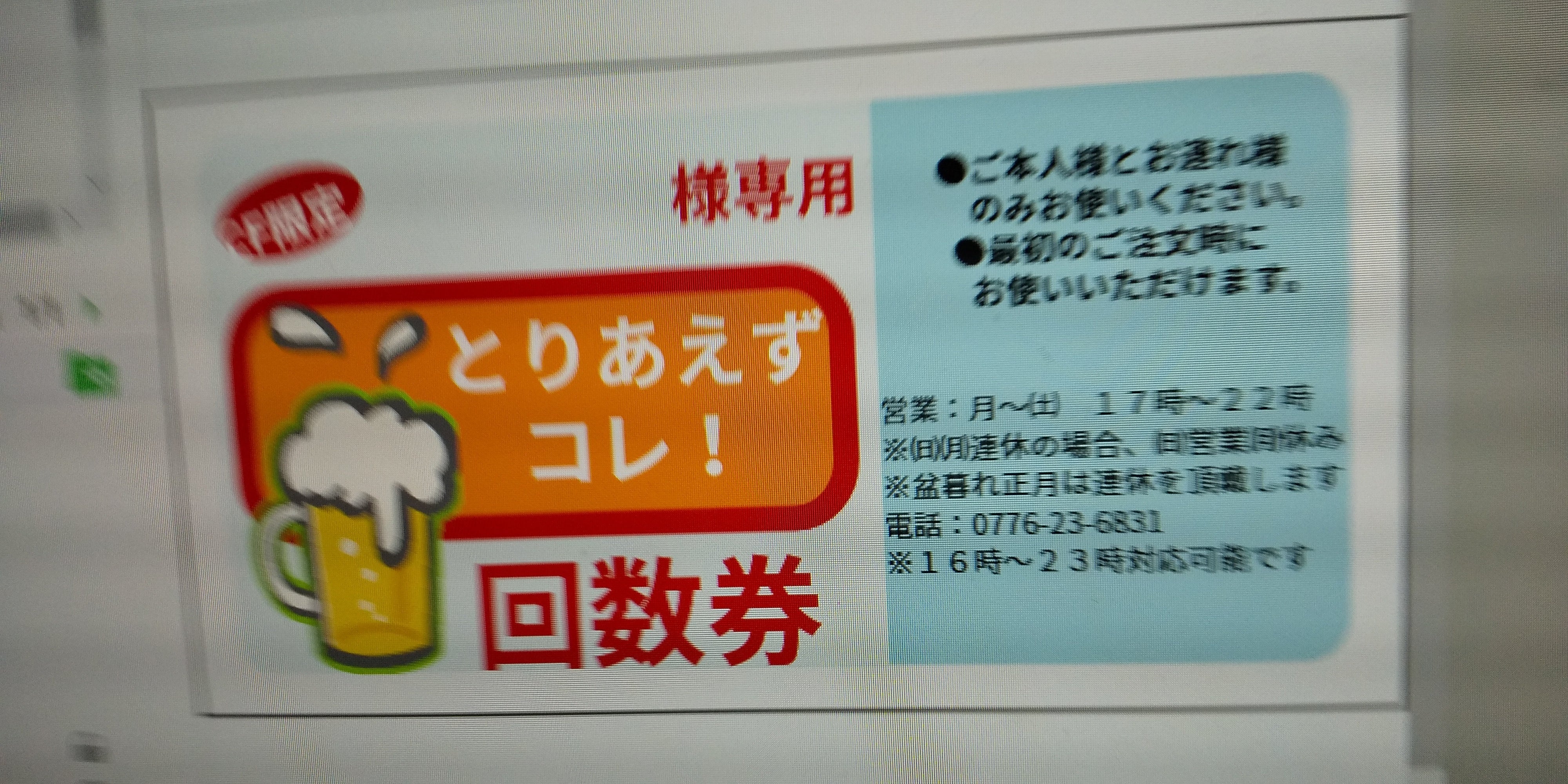 ただいま回数券を