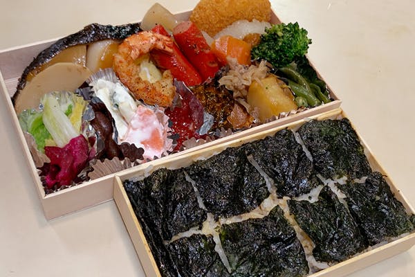 のり弁(梅)1,100円を10個、新宿区の店舗・事務所へお届けします。