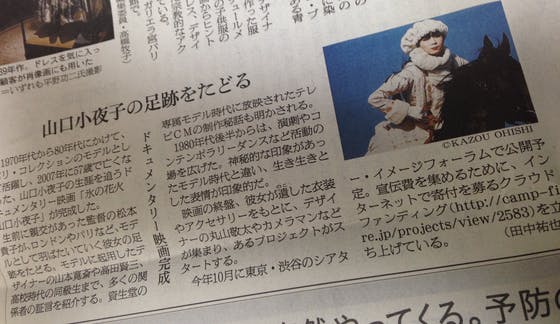 本日、7月23日(木)朝日新聞夕刊6面に映画「氷の花火 山口小夜子」の記事を掲載して頂きましたー!!
