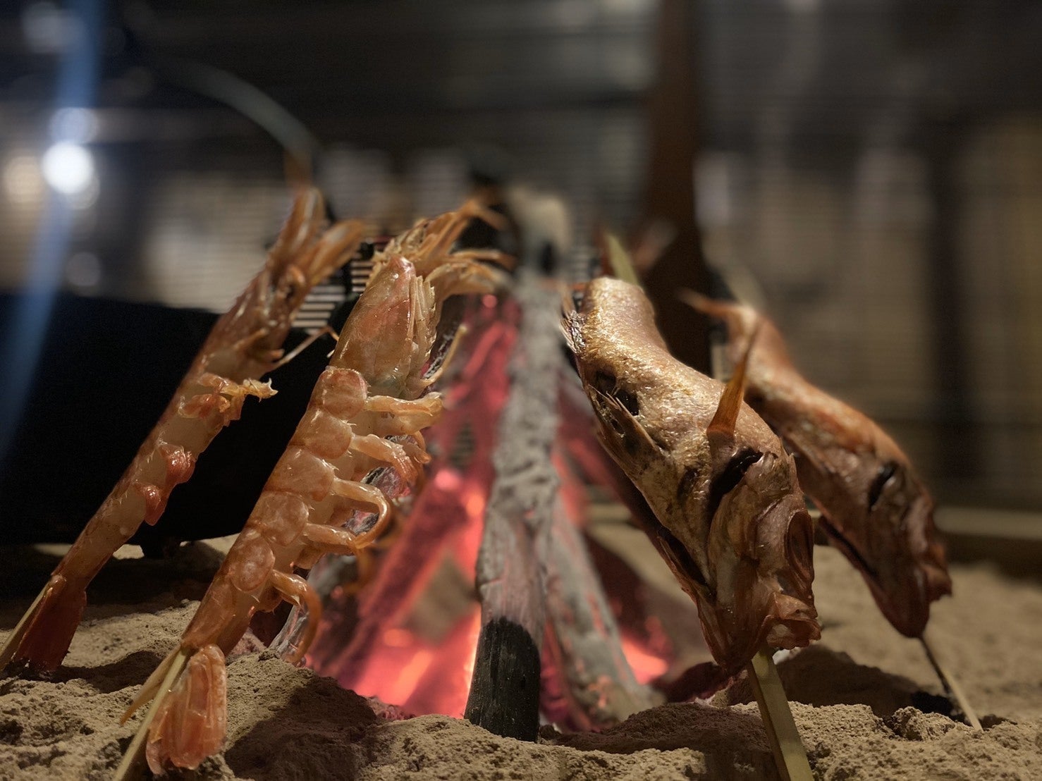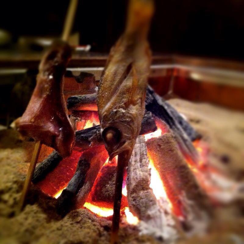 囲炉裏でじっくりふわっと焼き上げるお魚さん達
