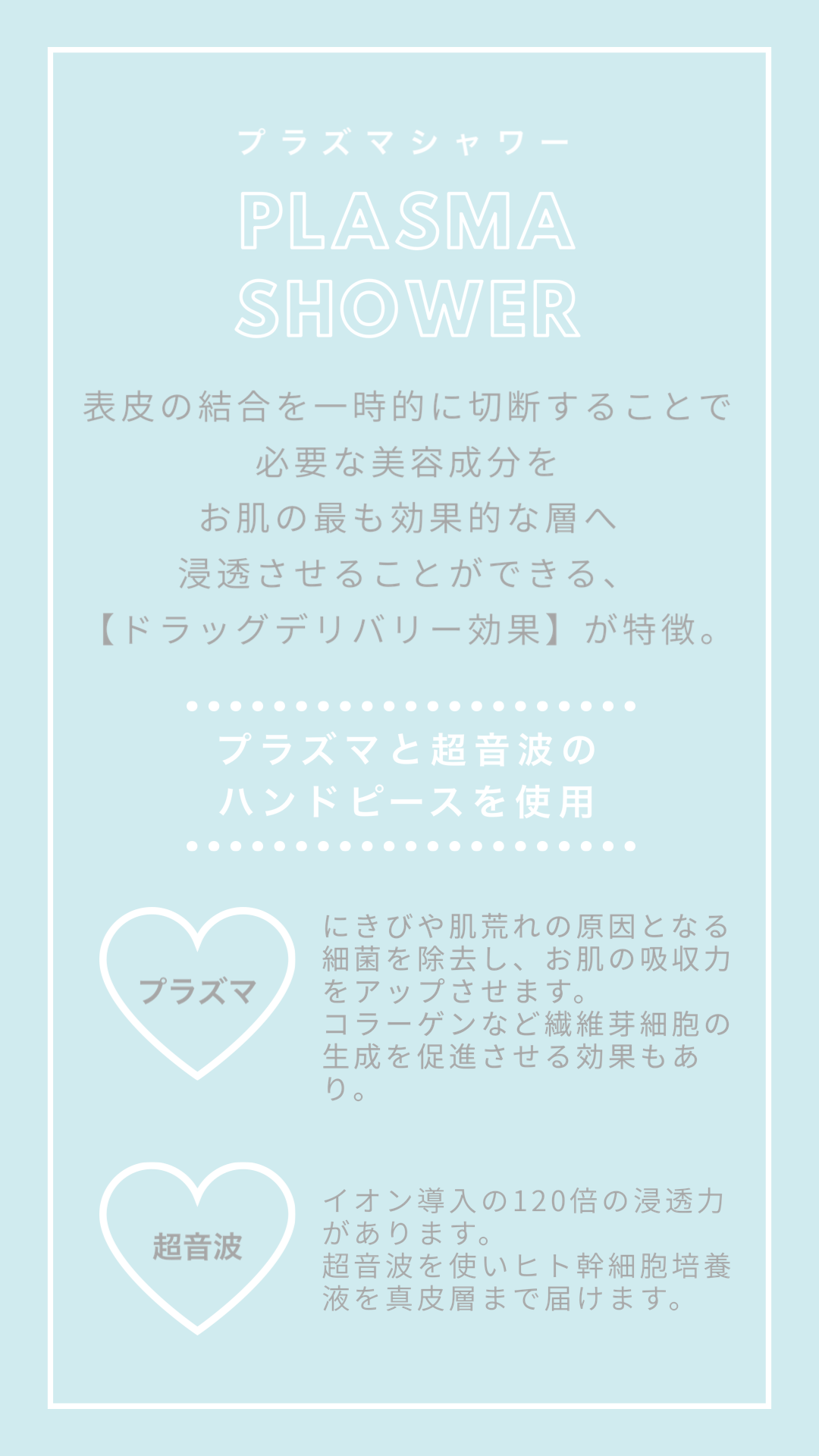 プラズマシャワーはにきびなどの肌荒れを改善したい方、ハリやツヤがほしい方などにおすすめ♩