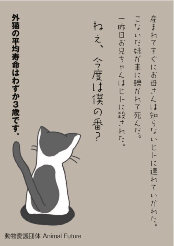 周辺の道路では頻繁に猫の交通事故が起こっているとのことで