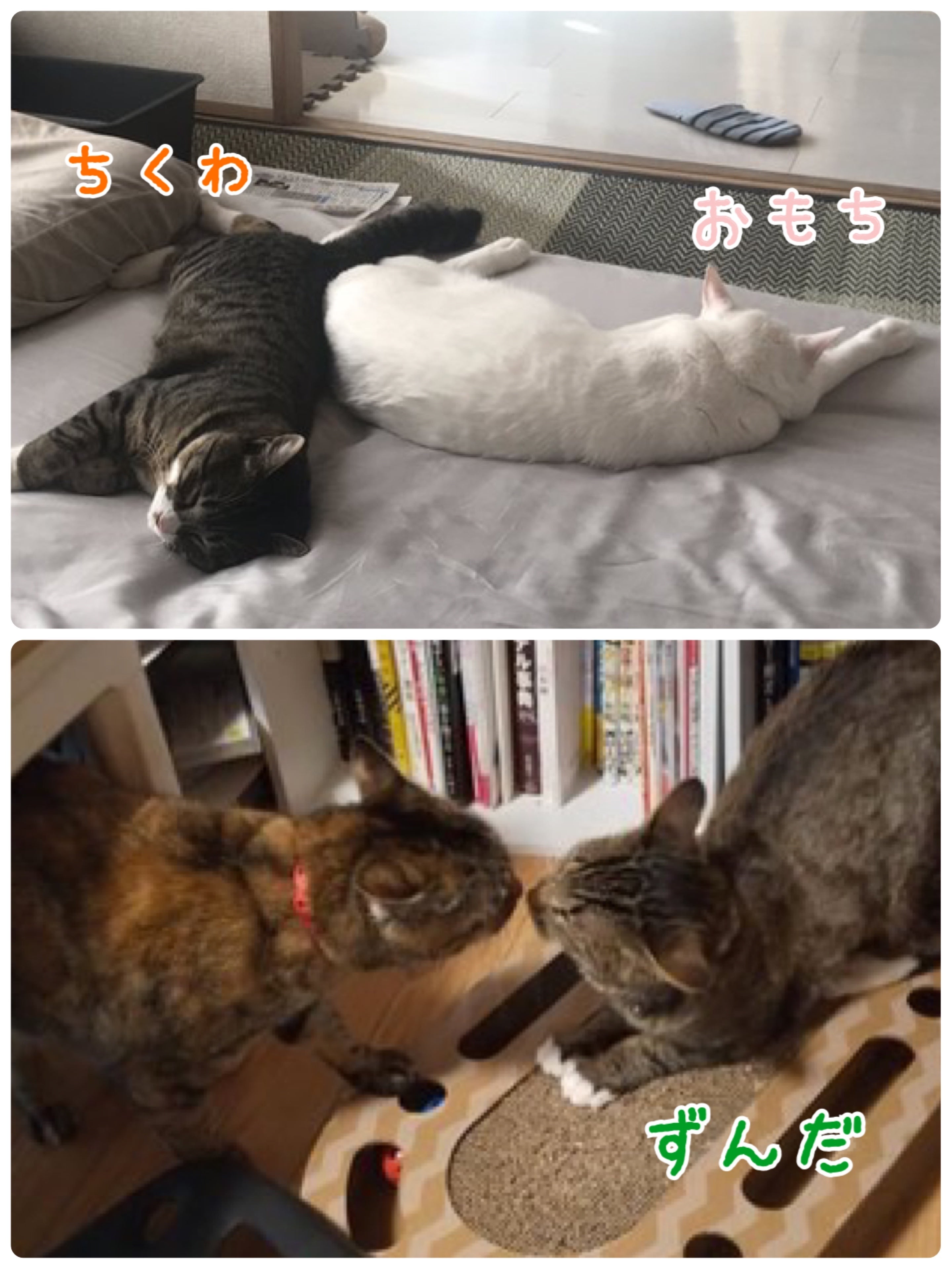 甘えん坊なちくわもボス気質なおもちもとっても幸せそうです。