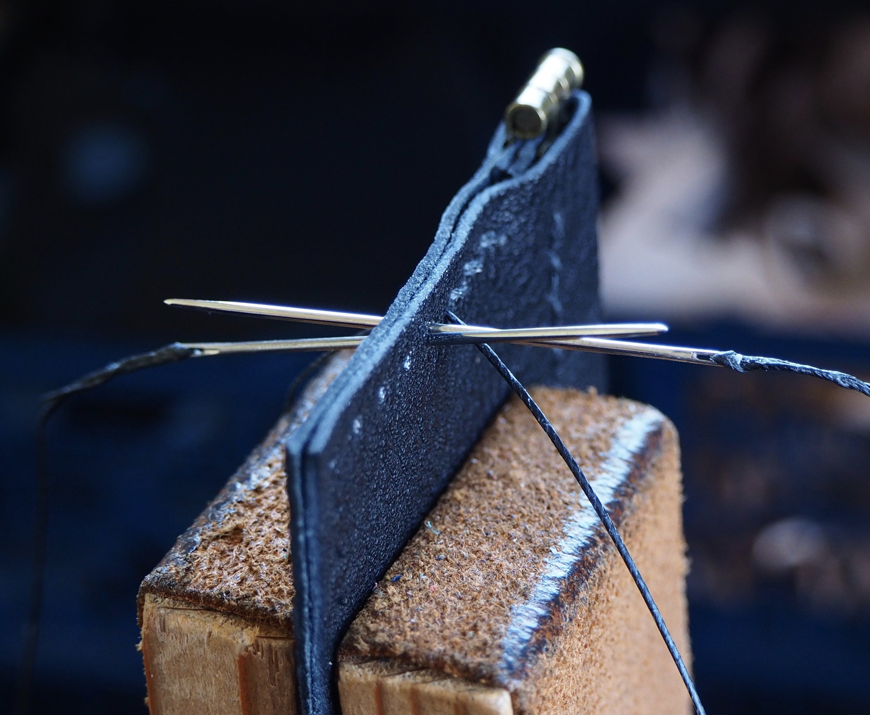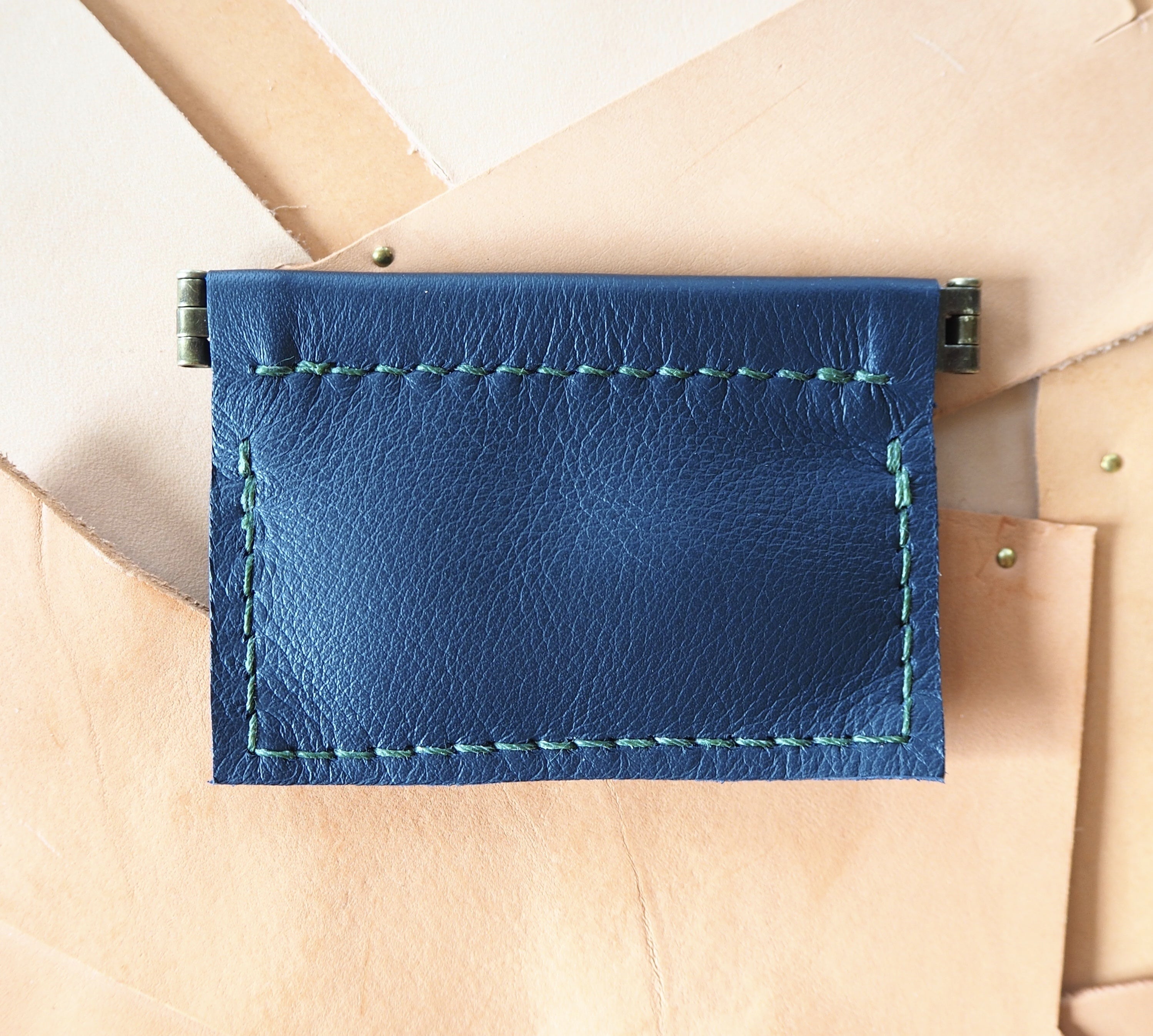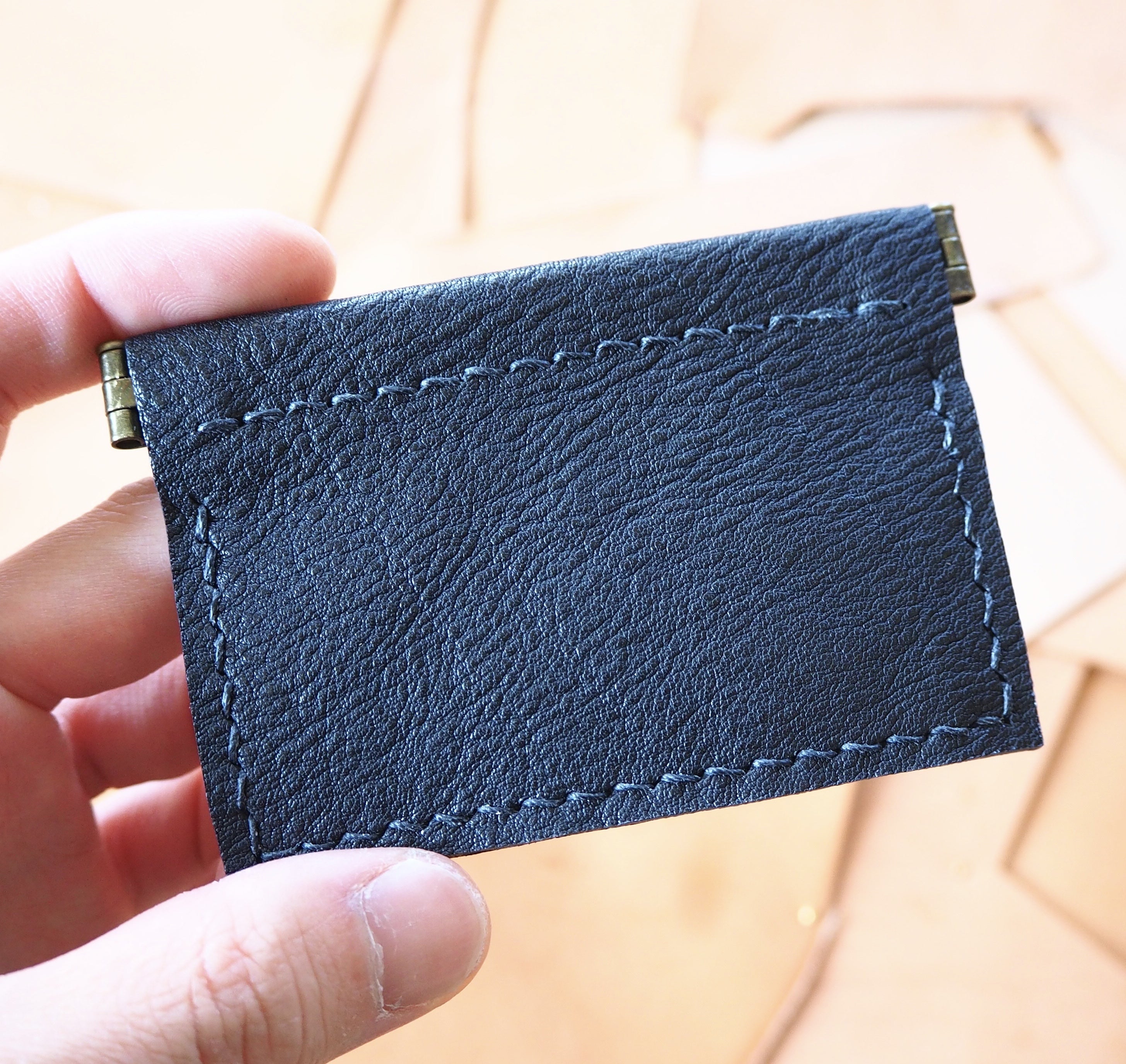 手縫い縫製によって仕上げた薄型の小銭入れです。素材はもちろん本革(牛革)。