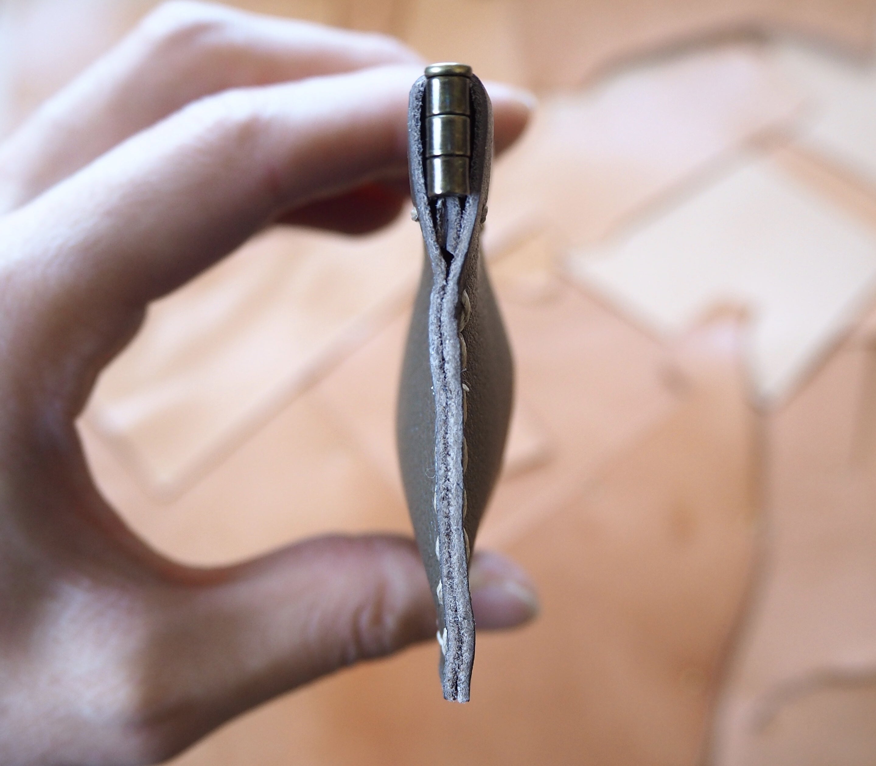 また、厚み1mm弱の薄い革を使用することで小銭を入れた際にも1cm程度に厚みが収まる仕様を実現しました。