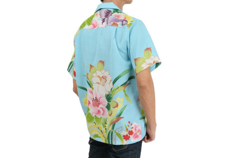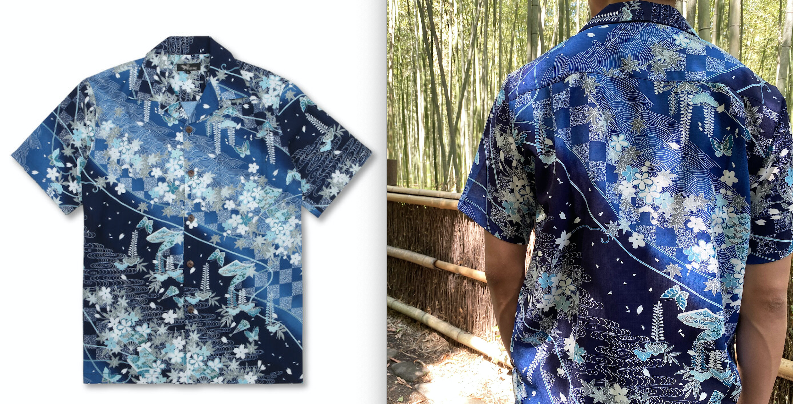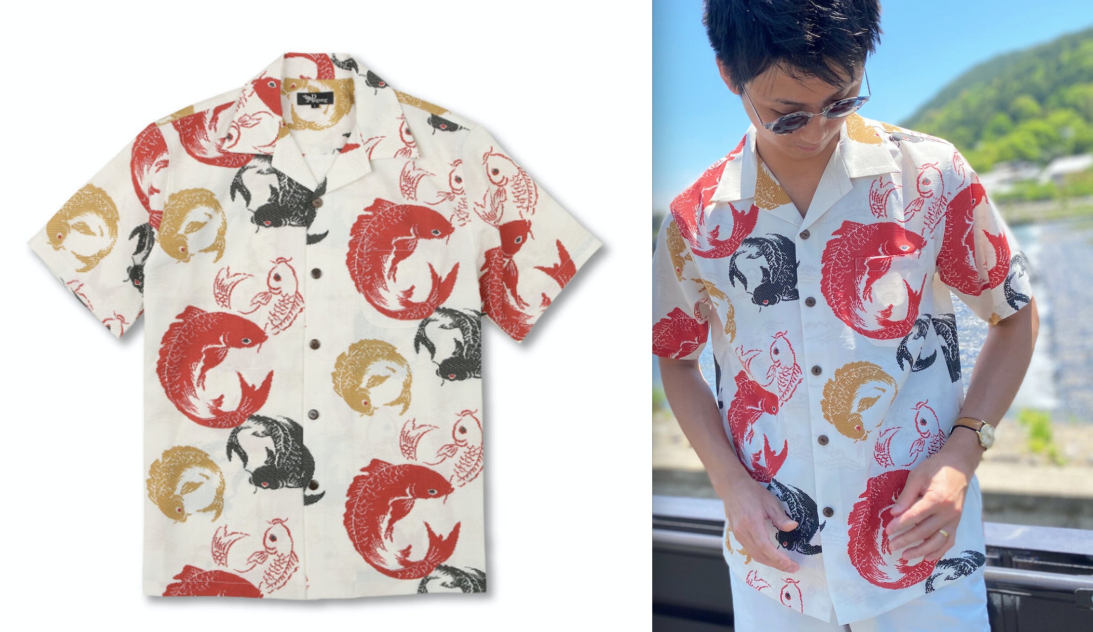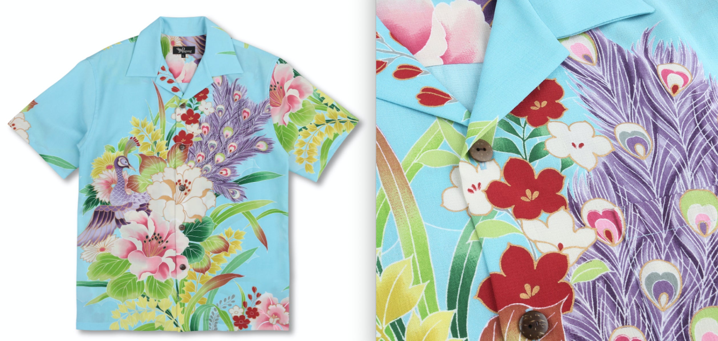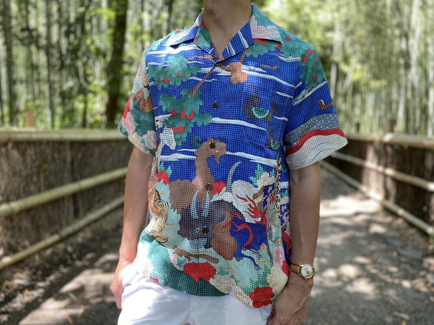 京友禅で染められた鮮やかなアロハシャツは、着た人の気持ちを明るくさせてくれる、コロナで暗くなった世の中を明るくすることができると信じています。