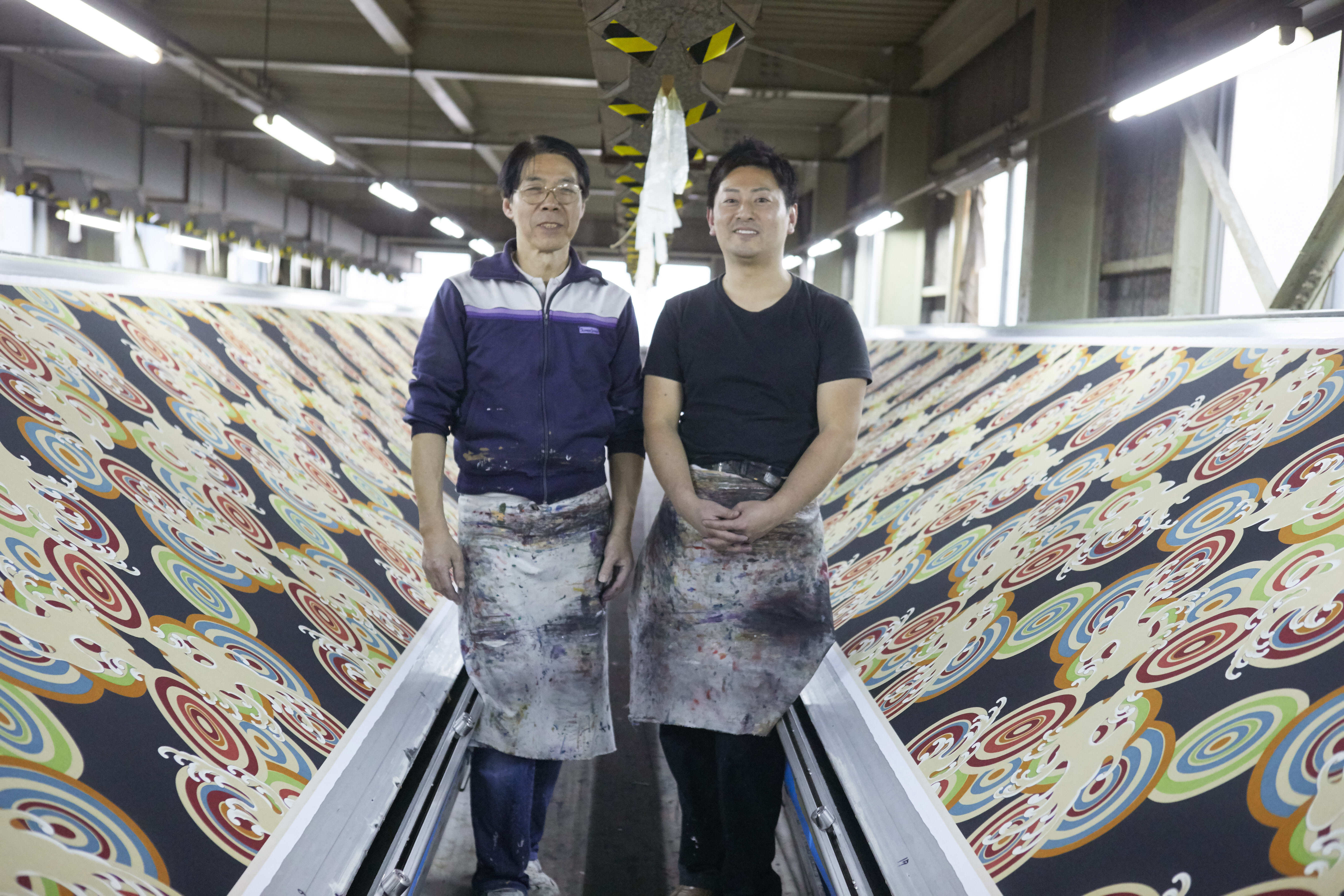 亀田富染工場は1919年に創業し、代々、友禅染めの技法を用いて京都で着物を染めてきました。多い時には100人以上もの職人が染めに従事し、着物を作ってきました。しかし昭和後期以降、着物の需要が急激に減少するにつれて業務縮小を余儀なくされ、職人はわずか5人に減少し、主に大手アパレルの染色加工業を行っていました。