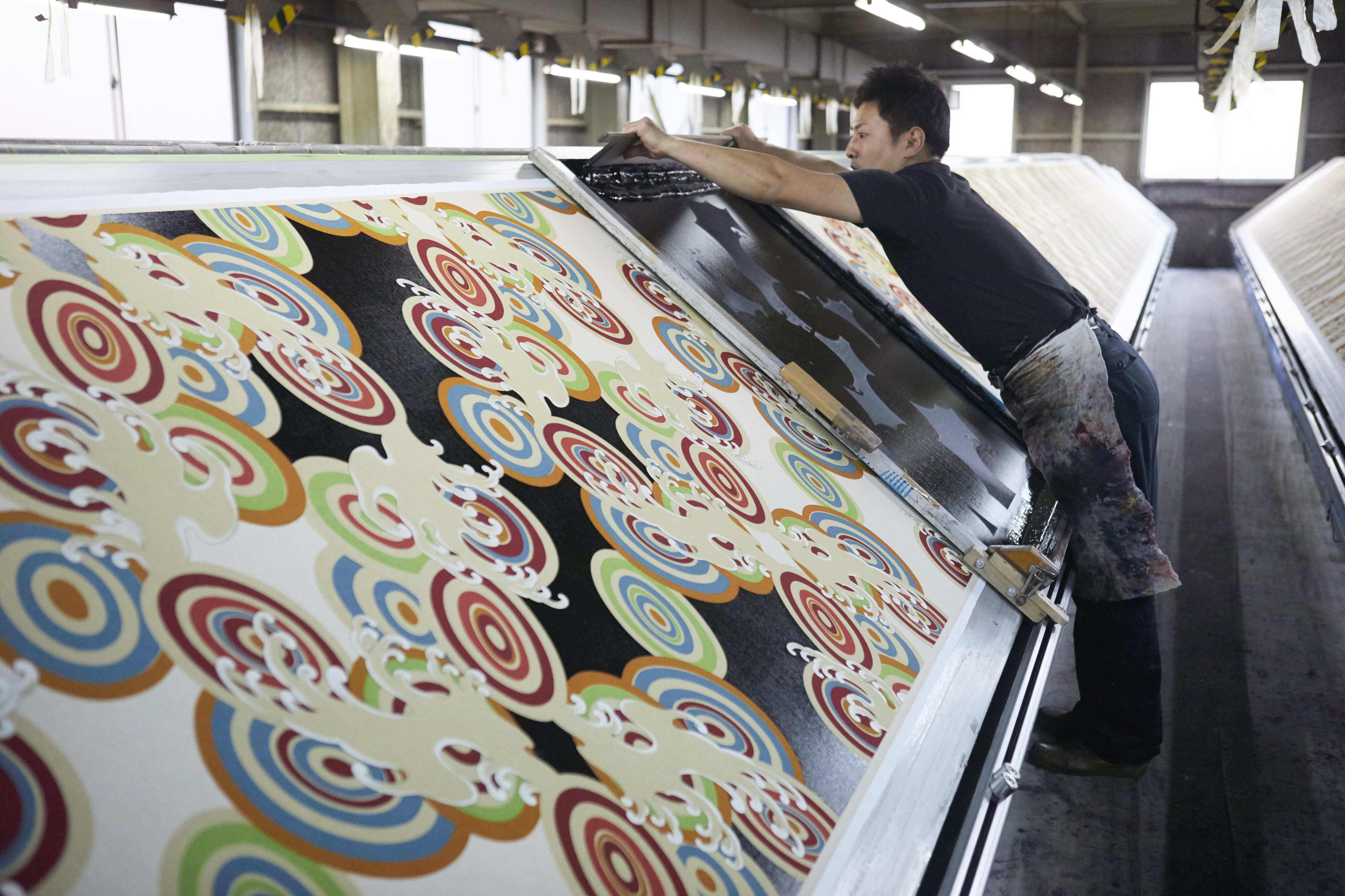 京都の染めは分業になっており、様々な人、会社が協力して染物が完成します。