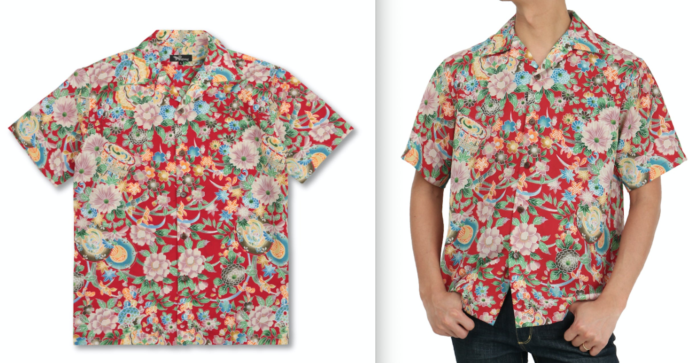 染め工場の蔵には、京友禅の図案が、5〜6千点残されていました。早速これらの蔵に眠る図案を持ち出して、生地を染めて、アロハシャツに仕立てたところ、とても評判がよかったので、試作を繰り返し商品としての改良を加えていきました。