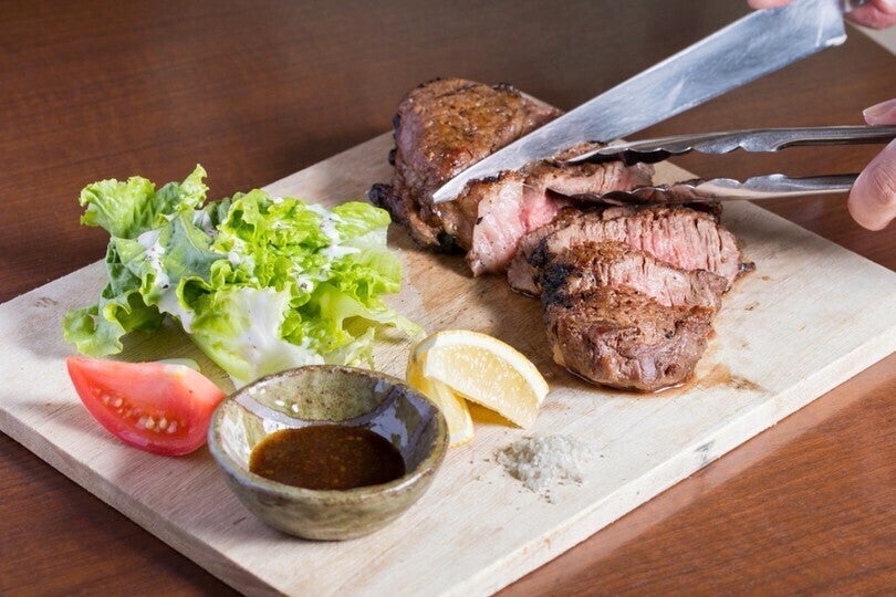 おすすめ商品 約450gの赤身の肉肉しいお肉、【アンガスビーフのワンポンドステーキ】をフレンチ出身のシェフが炭火で豪快かつ丁寧に焼きますので柔らかくジューシーに仕上がります。是非一度お召し上がりください。