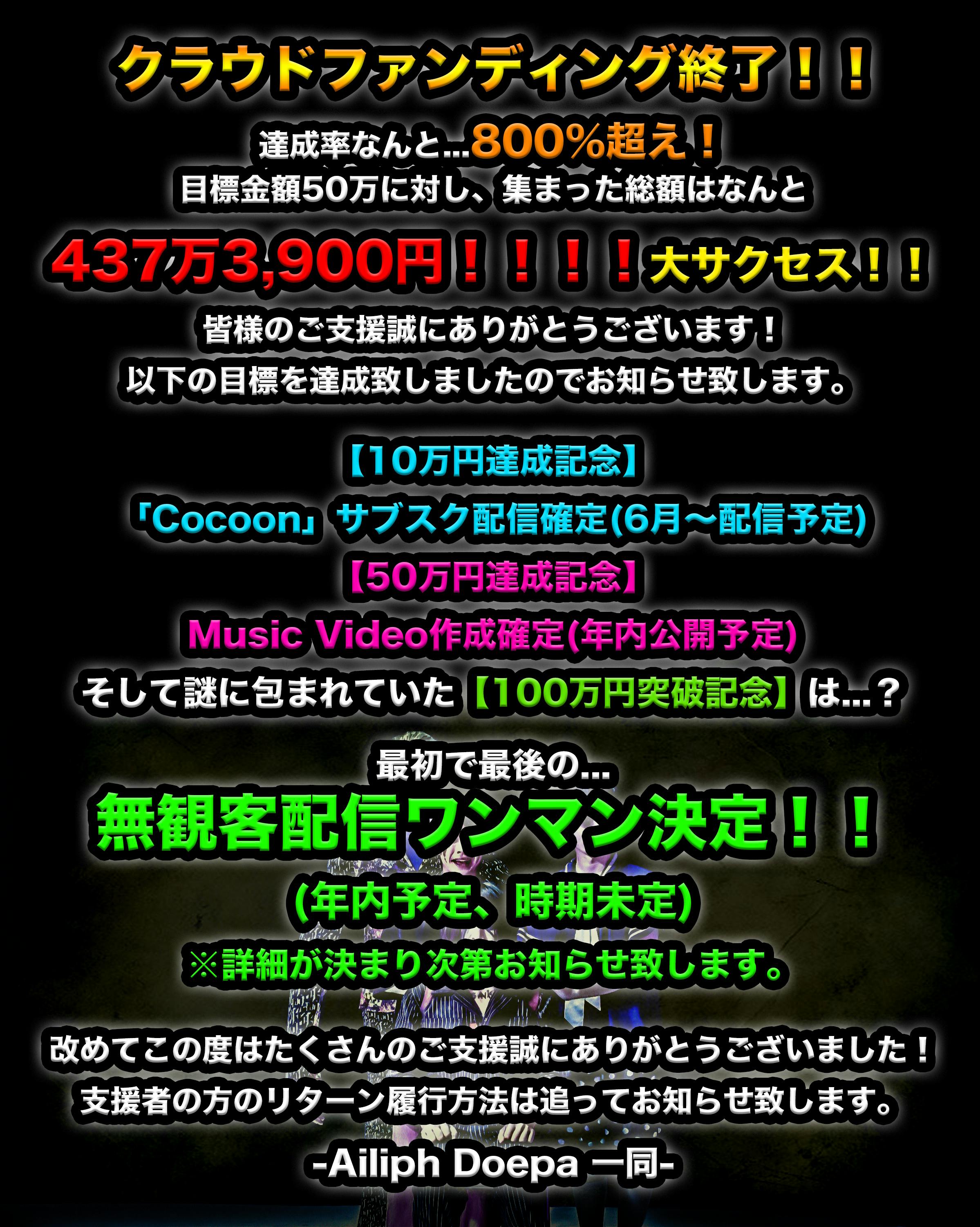 皆様の凄まじいご支援の嵐のおかげで最終的な達成率はなんと800%超え!