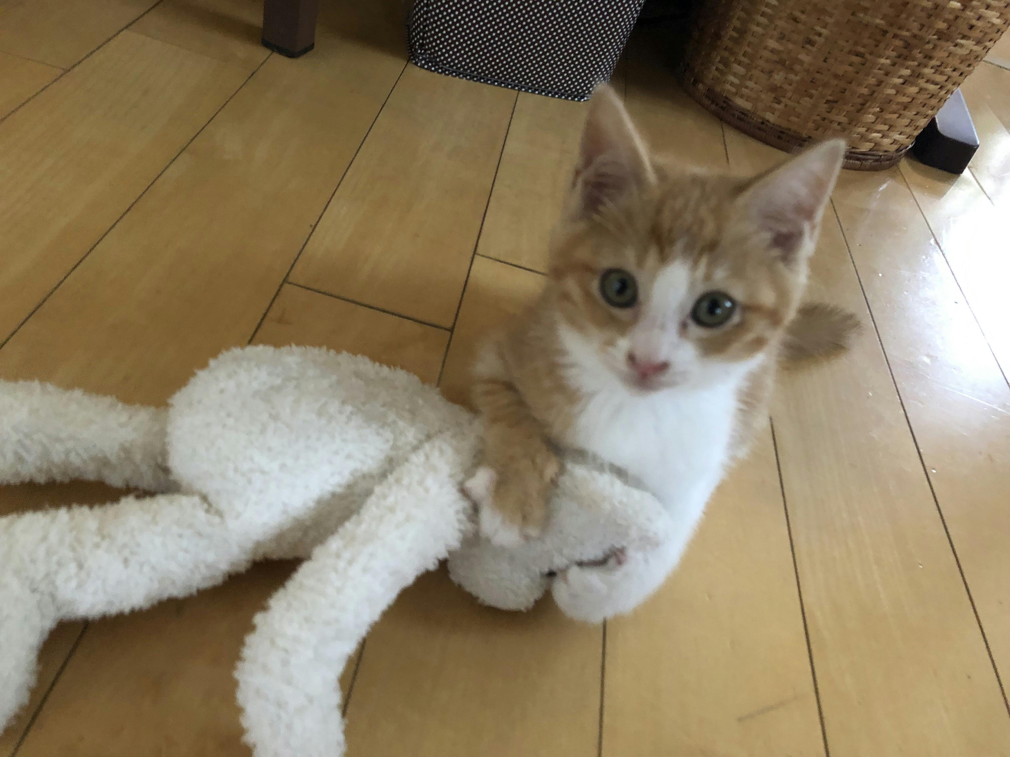 生後まもなく親猫、兄弟猫と離れたためか、寂しがり屋で甘えん坊な子です。