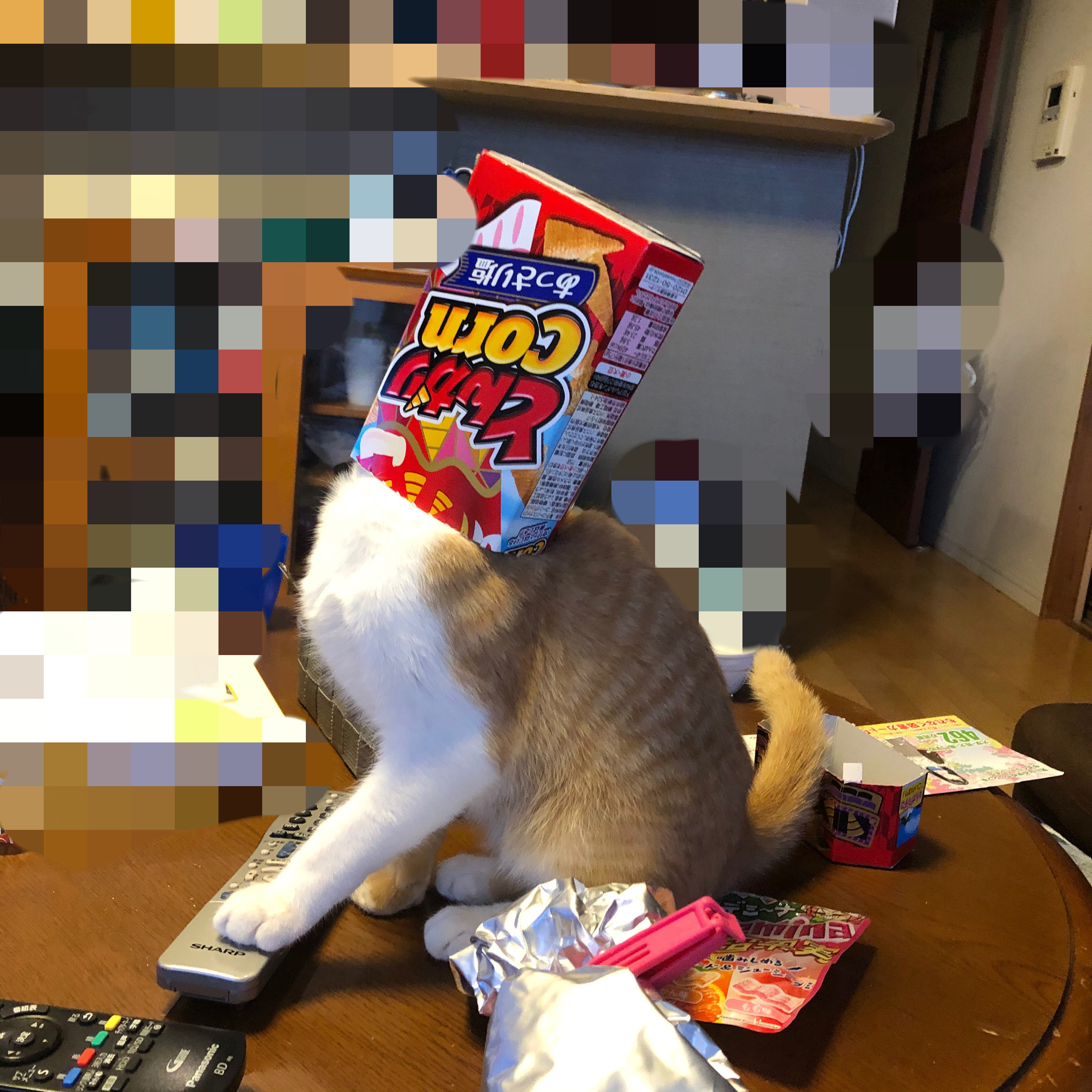 こちらは投薬後1時間の断食中、お腹が空きすぎてとうとうお菓子の箱に頭を入れるまめちです…笑 微笑ましい反面、少し申し訳なさもあります…汗