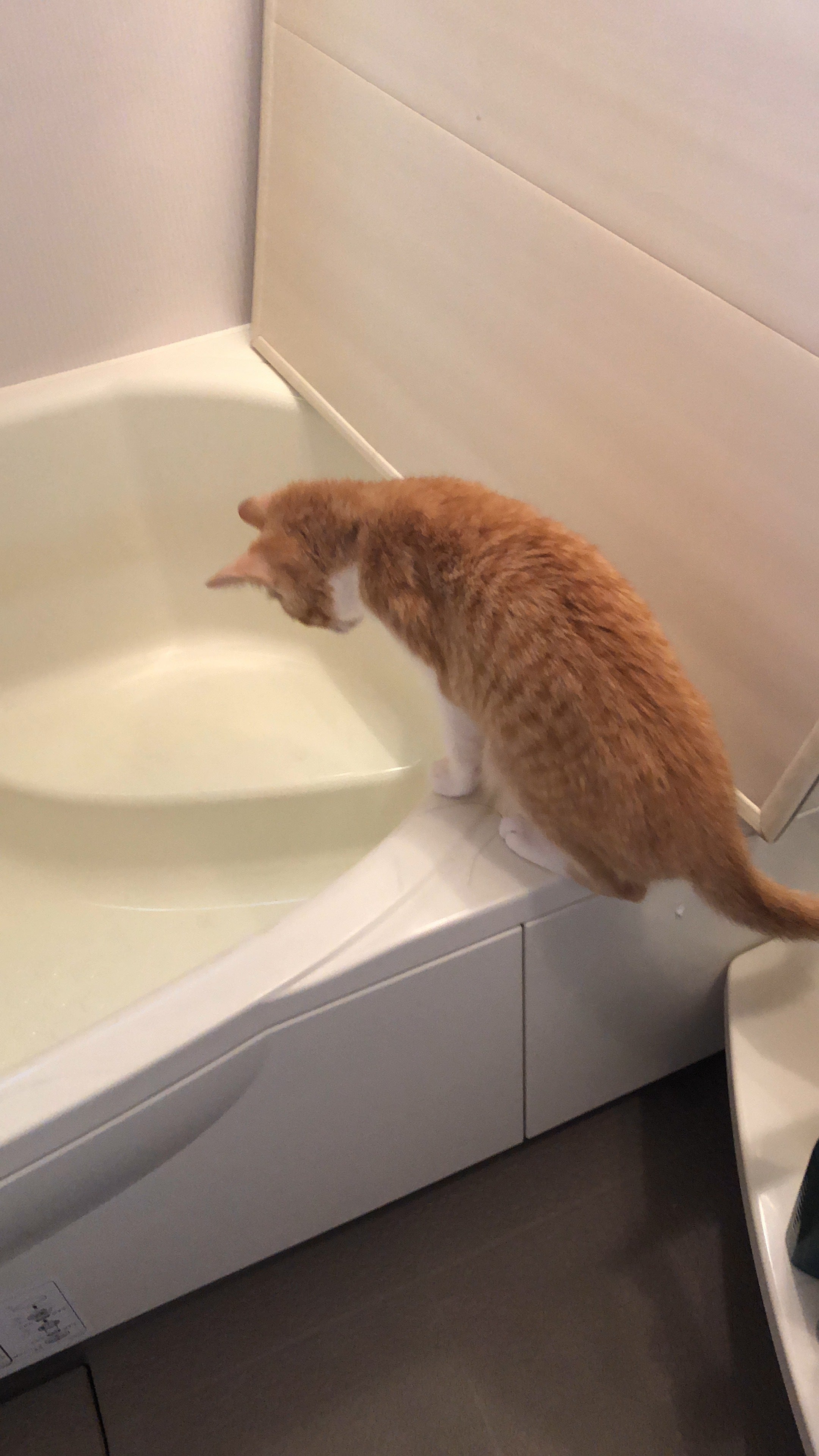 お風呂に興味津々なまめちです笑(※浴槽の中に水は入っていません)