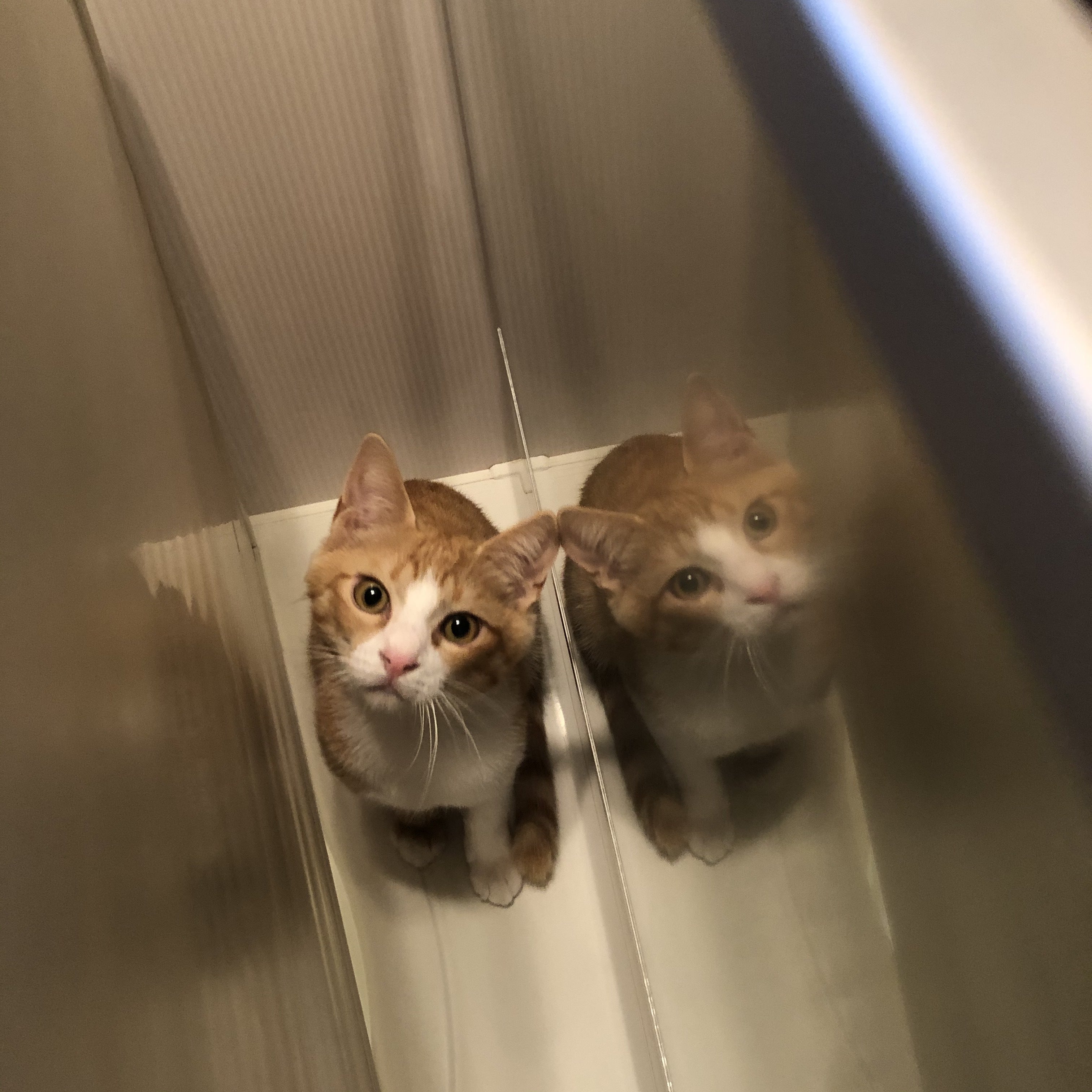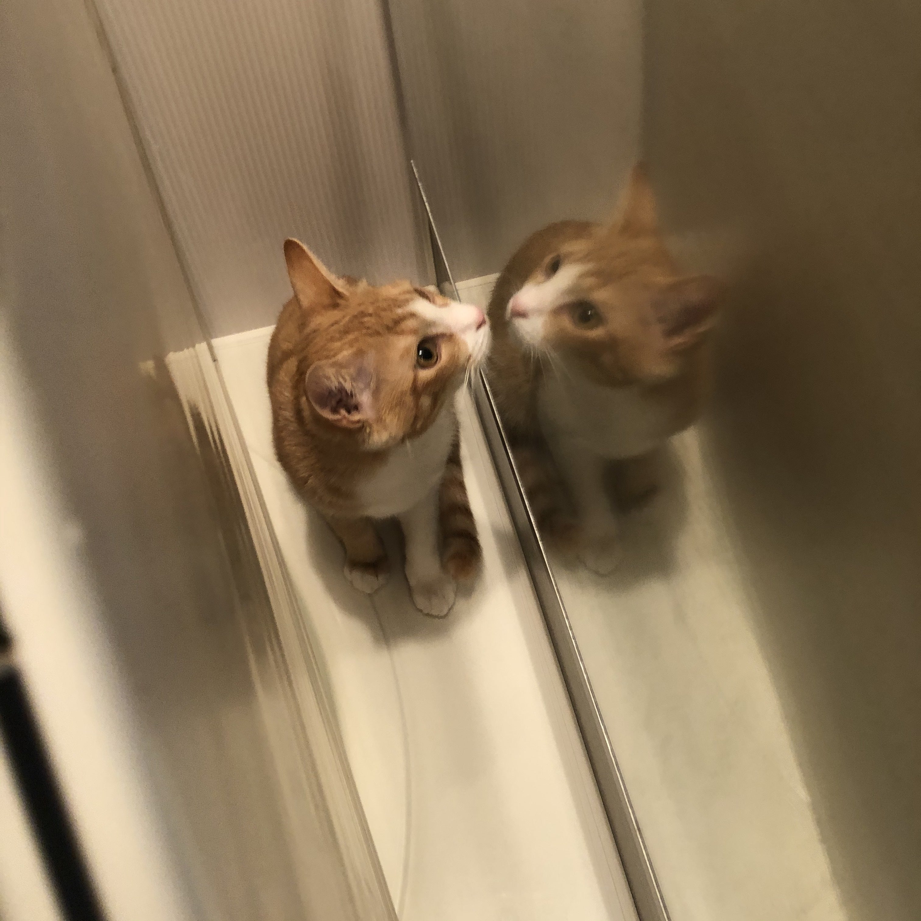 鏡を不思議そうに見るまめち。