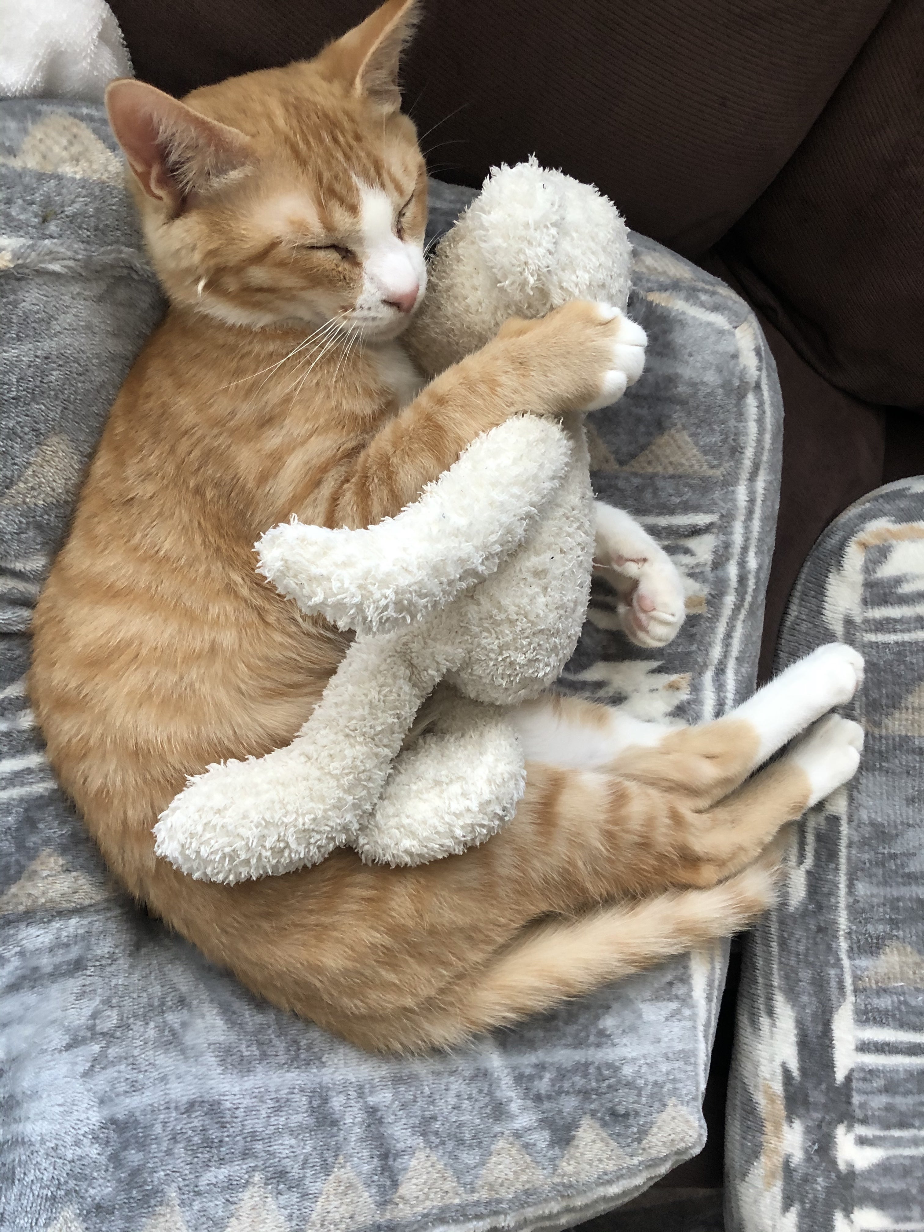 トップ画像は大好きな「相棒」を抱いて寝るまめちです笑