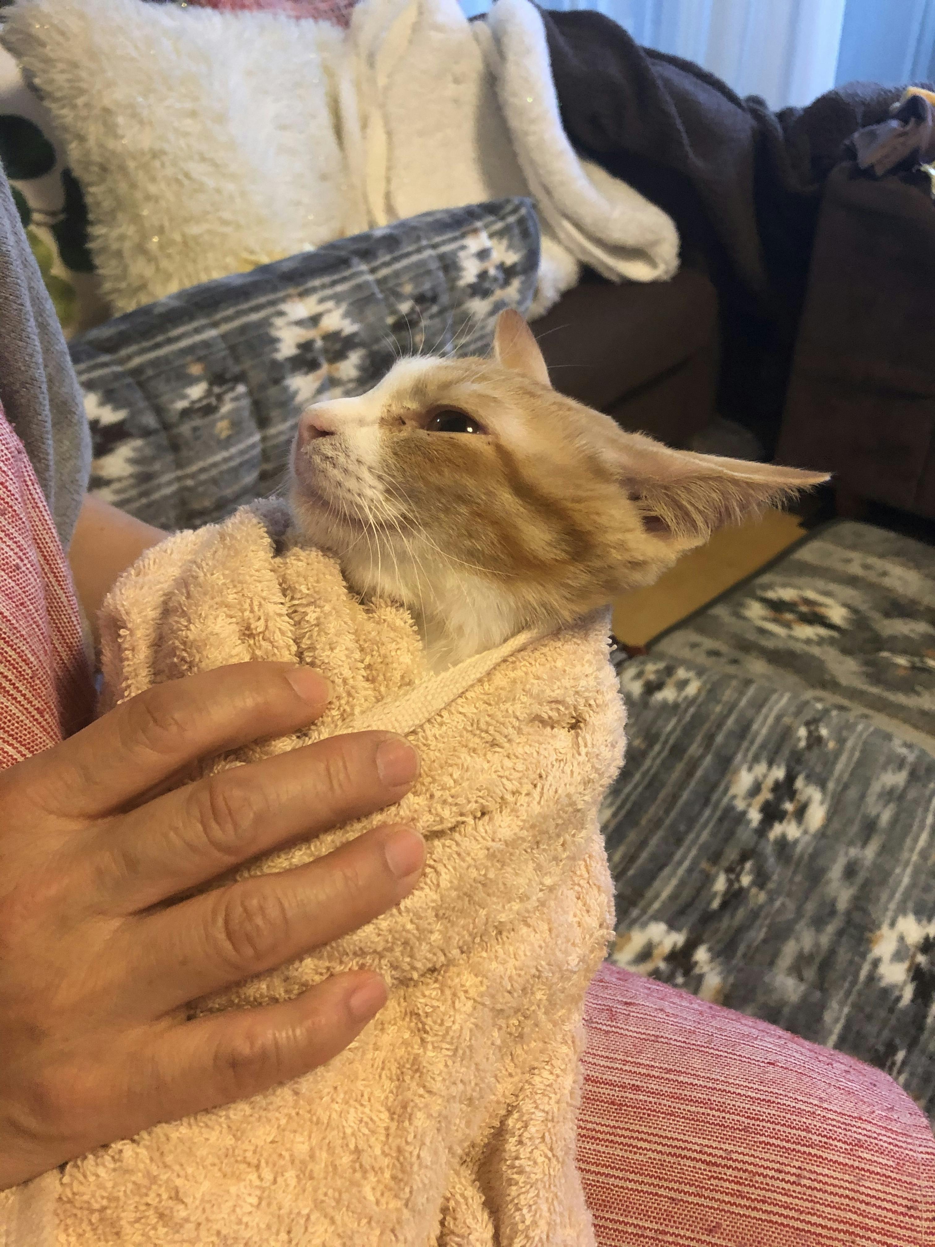 トップ画像は投薬前のまめちです。この前までは目を見開いて怯えていたのに、ここまで来るともはや悟りを開いたようにも見えます…笑